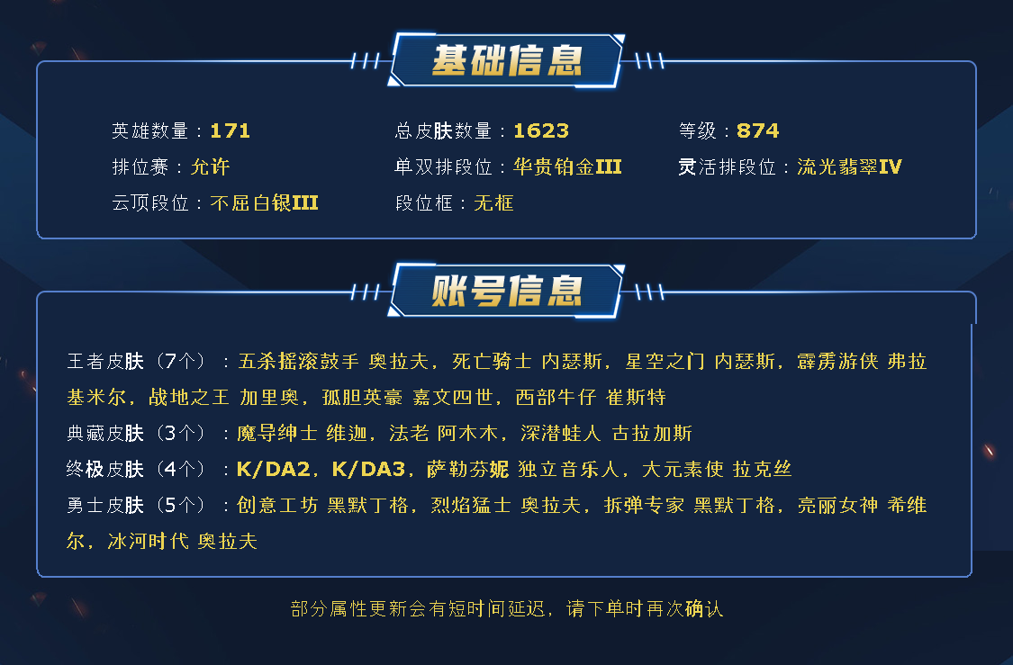 ~~喜欢记得收藏~~可排位~~1573皮全英雄丨60神话/至臻/海克斯丨神龙尊者套丨灵魂莲华套丨福牛守护套丨EDG套丨KDA套丨玉剑男女刀丨穿星创星御星丨泳池女警佐伊丨电玩女警卡莎丨星守佐伊卡莎ez丨IG卡莎妖姬卡密尔丨春晖嫦娥羊丝花木兰~~租之前尽量查一下游戏ID,确保段位是您需要的,避免浪费您的时间~~请勿挂机逃跑故意送人头,谢谢合作,谢谢~~