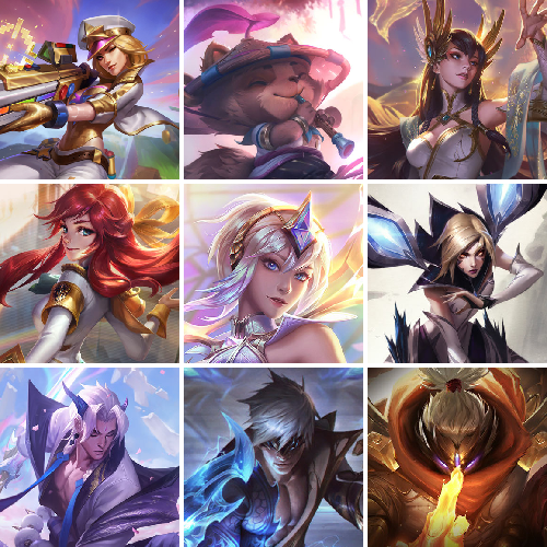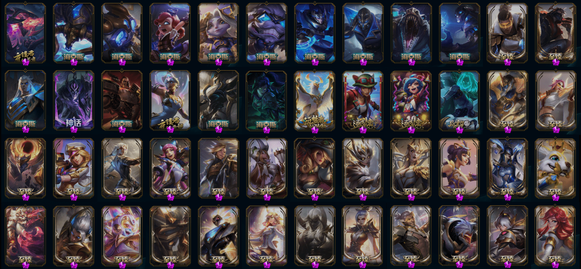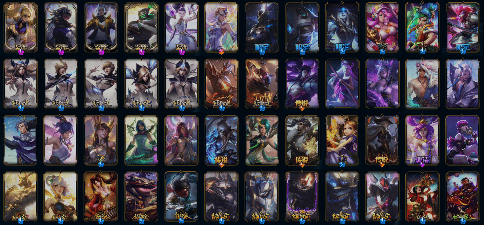 【重要皮肤】青花瓷丽桑卓至臻 西部魔影猎天使恶魔泰隆至臻 幻灵战斗猫金克丝至臻 青花瓷拉克丝至臻 魅惑女巫莫甘娜至臻 战斗学院蕾欧娜至臻 太空律动璐璐至臻 魔女婕拉至臻 魔女乐芙兰至臻 未来战士卢锡安至臻 真实伤害亚索至臻 真实伤害赛娜至臻 星之守护者索拉卡至臻 灵能特工伊泽瑞尔至臻 福牛守护者菲奥娜至臻 源计划逆流塞拉斯至臻 源计划阴劫至臻 王国机神玄武盖伦至臻 暗星墨菲特至臻 神龙尊者炎龙瑟提至臻 黑夜使者凯隐至臻 神龙尊者均衡之龙沃利贝尔至臻 征服者贾克斯至臻 飞升战神潘森至臻 KDA二代卡莎至臻 战斗学院拉克丝至臻 电玩女神凯特琳至臻 电玩女神凯特琳2022至臻 魅惑女巫厄运小姐至臻 魅惑女巫厄运小姐2022至臻 源计划正义艾瑞莉娅至臻 源计划正义艾瑞莉娅2022至臻 绒毛菲兹至臻 绒毛菲兹2022至臻 玉剑传说武剑仙至臻 玉剑传说武剑仙2022至臻 腥红之月亚托克斯至臻 腥红之月亚托克斯2022至臻 未来战士锤石至臻 未来战士锤石2022至臻 灰烬征服者潘森 海克斯科技安妮 海克斯科技雷克顿 海克斯科技斯维因 海克斯科技吉格斯 海克斯科技玛尔扎哈 海克斯科技嘉文四世 海克斯科技阿利斯塔 海克斯科技阿木木 海克斯科技崔丝塔娜 暗星科加斯 黎明使者卡尔玛 恐惧新星德莱厄斯 零之枪骑赫卡里姆 摄魂使者薇恩 胜利女神娑娜 胜利之王泰达米尔 胜利巨口克格莫 创星之灵璐璐 荣誉使者玛尔扎哈 养蜂人辛吉德 安妮梦游仙境 电玩女神厄运小姐 电玩勇者锐雯 玉剑传说舞剑仙 银龙裁决泰隆 神龙烈焰金克丝 碧玉之牙卡西奥佩娅 古琴余韵娑娜 春晖神女拉克丝 北辰之威内瑟斯 南天之怒沃里克 美猴王孙悟空 玉净夜叉凯特琳 紫金罗刹莫甘娜 虎痴之拳蔚 张辽文远 司马懿仲达 金猪烈焰瑟庄妮 纳财大帝塔姆 神龙之翼库奇 王国机神青龙德莱文 王国机神朱雀蕾欧娜 王国机神苍狼瑟提 王国机神白虎贾克斯 王国机神玄武盖伦 福牛守护者嘉文四世 胜利女神瑟庄妮 胜利机器人布里茨 胜利女神奥莉安娜 胜利枪神卢锡安 胜利之剑亚托克斯 甜心宝贝安妮 觅心游侠卢锡安 觅心女王艾希 觅心猎手薇恩 冬季仙境奥莉安娜 圣诞老人布隆 圣诞老人德莱文 冰雪驯鹿波比 冬季仙境卡尔玛 冰雪女神辛德拉 魄罗骑士瑟庄妮 平安夜女神娑娜 魅惑女巫厄运小姐 魅惑女巫莫甘娜 魅惑女巫崔丝塔娜 魅惑女巫奈德丽 伯爵卡萨丁 死亡誓约劫 灵魂收割者索拉卡 克烈古拉伯爵 泳池派对奥莉安娜 泳池派对塔莉垭 泳池派对格雷福斯 泳池派对蕾欧娜 泳池派对雷克顿 电玩战魂赫卡里姆 穿星魔锋赵信 御星魔矢艾希 送披萨的小姐姐希维尔 鸡里奥 制胜金靴李青 制胜金球拉莫斯 FPX锤石 FPX薇恩 FPX李青 FPX普朗克 FPX墨菲特 iG卡蜜尔 iG洛 iG卡莎 iG艾瑞莉娅 iG乐芙兰 iG菲奥娜 SSG霞 SSG伊泽瑞尔 SKTT1扎克 SKTT1烬 SKTT1辛德拉 SKTT1娜美 SKTT1艾克 SKTT1奥拉夫 SKTT1卡莉丝塔 SKTT1瑞兹 SSW雷恩加尔 SSW泰隆 SSW图奇 SSW辛吉德 SKTT1贾克斯 SKTT1李青 暗杀星蒙多 暗杀星努努和威朗普 暗杀星慎 Fnatic迦娜 Fnatic古拉加斯 Fnatic嘉文四世 Fnatic卡尔萨斯 冰雪节辛吉德 防暴士兵辛吉德 防暴天使凯尔 钢铁之翼艾尼维亚 冠军典狱长锤石 冠军之矛卡莉丝塔 冠军之刃锐雯2016 冠军之血希瓦娜 冠军之隐劫 鬼影森森茂凯 鬼影重重魔腾 海贼瑞兹 胡桃夹子萨科 警用试作体K9内瑟斯 密林猎手提莫 南瓜头费德提克 破空枪骑孙悟空 圣诞精灵崔丝塔娜 圣诞开心鬼提莫 圣诞狂欢基兰 圣诞狂欢努努和威朗普 圣诞老人古拉加斯 圣诞玩偶波比 圣诞驯鹿克格莫 糖果使徒费德提克 外星装甲库奇 无头骑士赫卡里姆 喜庆之树茂凯 邪恶圣诞老人维迦 幸福女神乐芙兰 雪默丁格 野兽猎人德莱文 野兽猎人泰达米尔 英勇玩具兵普朗克 永恒之森乐芙兰 征服者韦鲁斯 暗影沃里克 阿木木主人不要我了 波比的巧克力工坊 都铎王朝图奇 十五周年纪念希维尔 十周年纪念安妮 源代码乐芙兰 神凰行者瑞羽圣凰艾尼维亚 胜利凤凰艾尼维亚 大元素使拉克丝