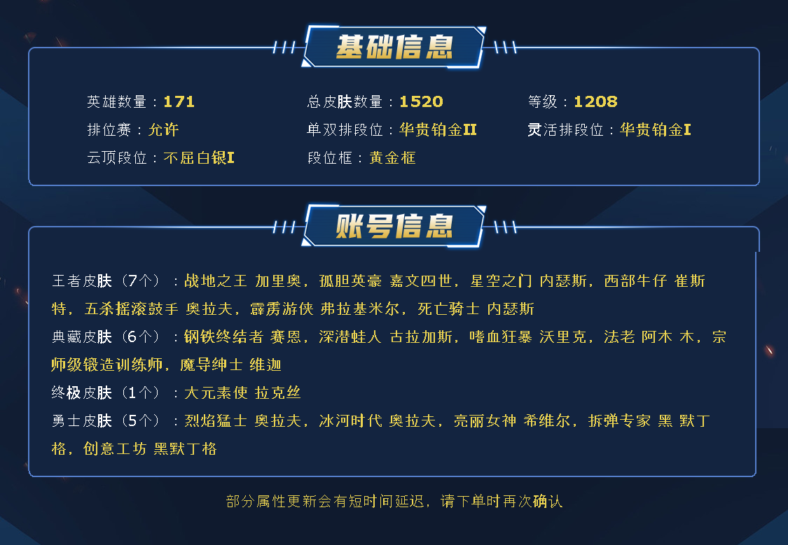 ~~喜欢记得收藏~~可排位~~1453皮全英雄丨70神话/至臻/海克斯丨IG套丨神龙尊者套丨灵魂莲华套丨鼠年套丨FPX套丨银龙裁决丨星守风女丨破败锤石丨KDA寡妇丨羊年金克斯丨西部天使艾希丨安妮梦游仙境丨穿星创星御星丨玉剑女刀剑姬剑圣丨电玩女枪瑞雯人马~~租之前尽量查一下游戏ID,确保段位是您需要的,避免浪费您的时间~~请勿挂机逃跑故意送人头,谢谢合作,谢谢~~