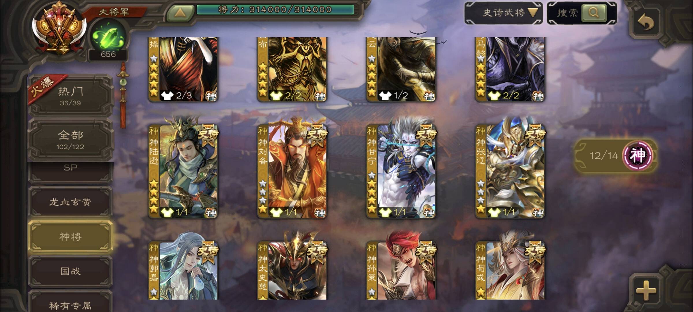 神——神吕布,神赵云,神司马懿,神陆逊,神刘备,神甘宁,神张辽,神太史慈,神荀彧,神曹操,神郭嘉,神孙策