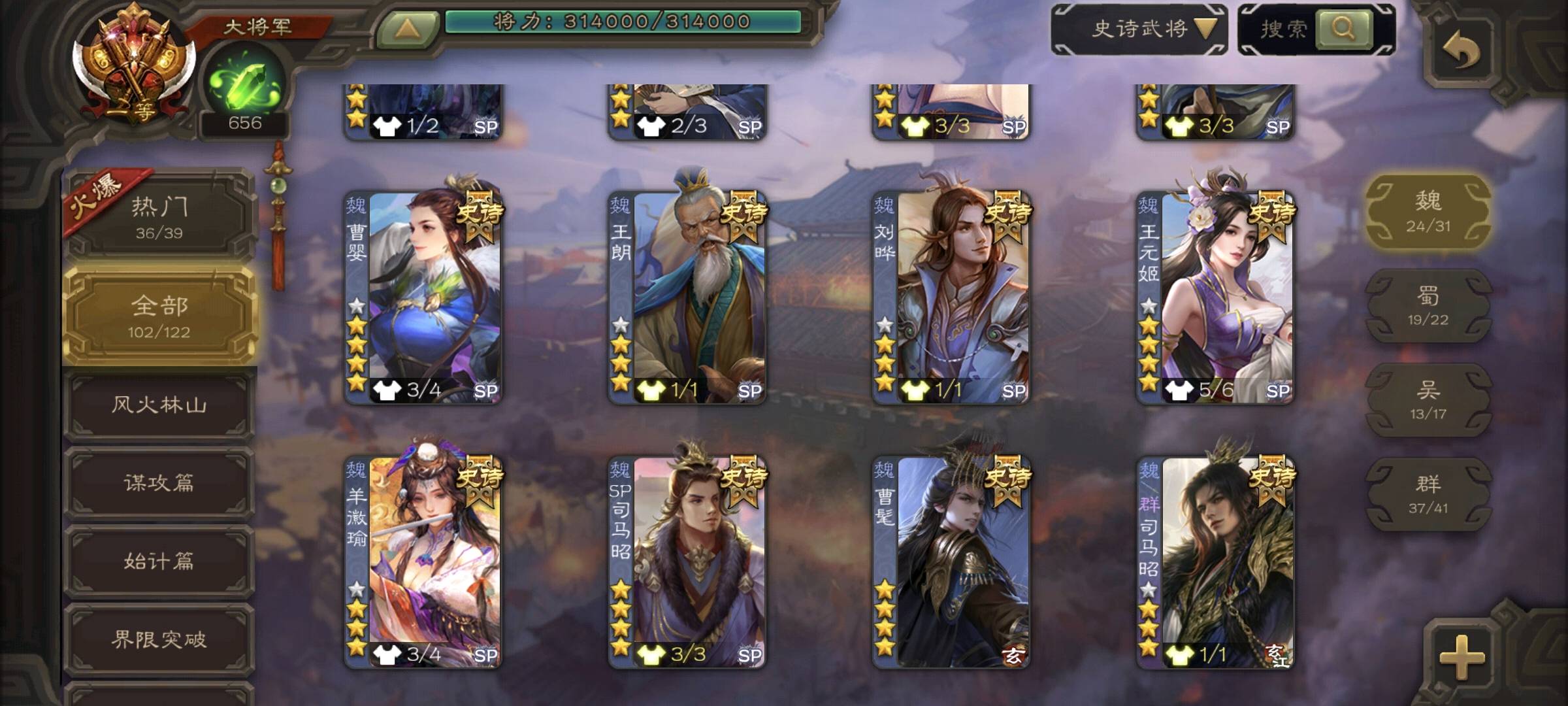 魏——郝昭,王粲,王凌,文鸯,界于禁,界钟会,界曹真,熙康,程昱,戏志才,杨修,陈琳,王朗,刘哔,王元姬,羊徽瑜,sp司马昭,曹纯,马钧,司马师,曹婴