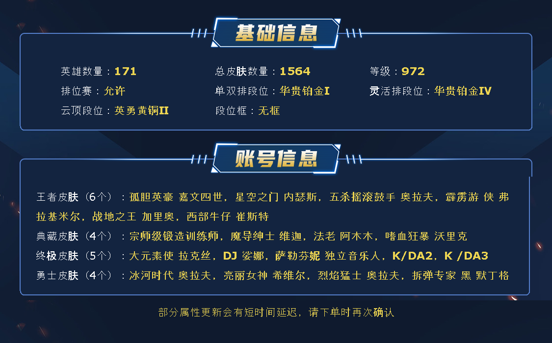 ~~喜欢记得收藏~~可排位~~1519皮全英雄丨60神话/至臻/海克斯丨龙瞎/龙的传人丨IG套丨KDA套丨神龙尊者套丨灵魂莲华套丨星之守护者套丨泳池女警佐伊~~租之前尽量查一下游戏ID,确保段位是您需要的,避免浪费您的时间~~请勿挂机逃跑故意送人头,谢谢合作,谢谢~~