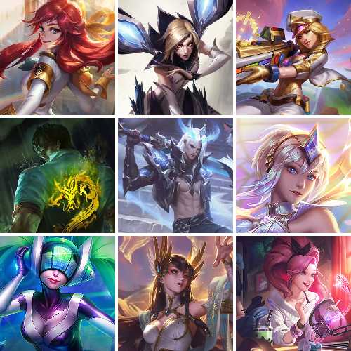 【重要皮肤】青花瓷丽桑卓至臻 北极星使者沃里克至臻 太空律动魔音海妖娜美至臻 灵魂莲华易至臻 海珀利安小队X09星环灵风迦娜至臻 星之守护者辛德拉至臻 海之歌萨勒芬妮至臻 幻灵战斗猫金克丝至臻 青花瓷拉克丝至臻 神凰行者烈羽焰凰霞至臻 魅惑女巫莫甘娜至臻 女帝黛安娜至臻 战斗学院蕾欧娜至臻 太空律动璐璐至臻 魔女婕拉至臻 奥术师佐伊至臻 未来战士卢锡安至臻 真实伤害亚索至臻 真实伤害赛娜至臻 星之守护者索拉卡至臻 灵能特工伊泽瑞尔至臻 福牛守护者菲奥娜至臻 源计划逆流塞拉斯至臻 暗星墨菲特至臻 神龙尊者炎龙瑟提至臻 黑夜使者凯隐至臻 飞升战神潘森至臻 KDA二代卡莎至臻 KDA一代卡莎至臻 战斗学院拉克丝至臻 战斗学院拉克丝2022至臻 电玩女神凯特琳至臻 魅惑女巫厄运小姐至臻 源计划正义艾瑞莉娅至臻 真实伤害奇亚娜至臻 真实伤害奇亚娜2022至臻 绒毛菲兹至臻 绒毛菲兹2022至臻 玉剑传说武剑仙至臻 玉剑传说武剑仙2022至臻 未来战士锤石至臻 未来战士锤石2022至臻 黑夜使者李青至臻 黑夜使者李青2022至臻 灰烬骑士派克 海克斯科技吉格斯 海克斯科技玛尔扎哈 海克斯科技嘉文四世 海克斯科技崔丝塔娜 黎明使者卡尔玛 零之枪骑赫卡里姆 摄魂使者薇恩 新创战纪希维尔 胜利女神娑娜 胜利之王泰达米尔 胜利巨口克格莫 银白审判凯尔 养蜂人辛吉德 安妮梦游仙境 电玩女神厄运小姐 星之守护者伊泽瑞尔 玉剑传说舞剑仙 神凰行者幽羽玄凰萨勒芬妮 星之守护者佐伊 龙的传人李青 替父从军花木兰 碧玉之牙卡西奥佩娅 春晖神女拉克丝 北辰之威内瑟斯 南天之怒沃里克 玉净夜叉凯特琳 广寒仙子嫦娥 司马懿仲达 王国机神苍狼瑟提 福牛守护者厄斐琉斯 福牛守护者阿利斯塔 胜利女神瑟庄妮 胜利之树茂凯 胜利机器人布里茨 胜利女神奥莉安娜 胜利枪神格雷福斯 胜利枪神卢锡安 胜利之剑亚托克斯 甜心宝贝娑娜 觅心魔灵奥莉安娜 觅心女王艾希 觅心之翼奎因 觅心萝莉金克丝 幽梦玫瑰辛德拉 冬境仙灵索拉卡 魄罗骑士瑟庄妮 夺命美人卡特琳娜 平安夜女神娑娜 圣诞糖果棒厄运小姐 大魔王提莫 克烈古拉伯爵 海之歌永恩 泳池派对凯特琳 泳池派对佐伊 泳池派对奥莉安娜 泳池派对塔莉垭 泳池派对厄运小姐 泳池派对格雷福斯 泳池派对蕾欧娜 送披萨的小姐姐希维尔 EDG佛耶戈 iG卡蜜尔 iG洛 iG卡莎 iG艾瑞莉娅 iG乐芙兰 iG菲奥娜 SKTT1娜美 SKTT1卡莉丝塔 SKTT1瑞兹 SKTT1阿兹尔 SSW雷恩加尔 SSW泰隆 SSW图奇 SSW辛吉德 SKTT1贾克斯 SKTT1婕拉 暗杀星蒙多 Fnatic迦娜 Fnatic库奇 Fnatic古拉加斯 Fnatic嘉文四世 Fnatic卡尔萨斯 冰雪节辛吉德 防暴士兵辛吉德 防暴天使凯尔 钢铁之翼艾尼维亚 冠军典狱长锤石 冠军掠夺者卡兹克 冠军之血希瓦娜 鬼影重重魔腾 胡桃夹子萨科 惊悚派对阿木木 魅惑女巫娜美 蒙多蒙多 密林猎手提莫 南瓜头费德提克 圣诞精灵崔丝塔娜 圣诞开心鬼提莫 圣诞狂欢基兰 圣诞老人古拉加斯 圣诞玩偶波比 圣诞驯鹿克格莫 外星装甲库奇 无头骑士赫卡里姆 喜庆之树茂凯 邪恶圣诞老人维迦 幸福女神乐芙兰 雪默丁格 野兽猎人德莱文 野兽猎人瑟庄妮 野兽猎人泰达米尔 英勇玩具兵普朗克 勇者阿狸 暗影沃里克 冠军之箭艾希 魅惑女巫波比 阿木木主人不要我了 2021全球总决赛嘉文四世 波比的巧克力工坊 都铎王朝图奇 十五周年纪念希维尔 十周年纪念安妮 源代码乐芙兰 神凰行者瑞羽圣凰艾尼维亚 胜利凤凰艾尼维亚 DJ娑娜 大元素使拉克丝 KDAALLOUT萨勒芬妮独立音乐人 KDAALLOUT萨勒芬妮明日新星 KDAALLOUT萨勒芬妮超级巨星 绝息圣堂洛