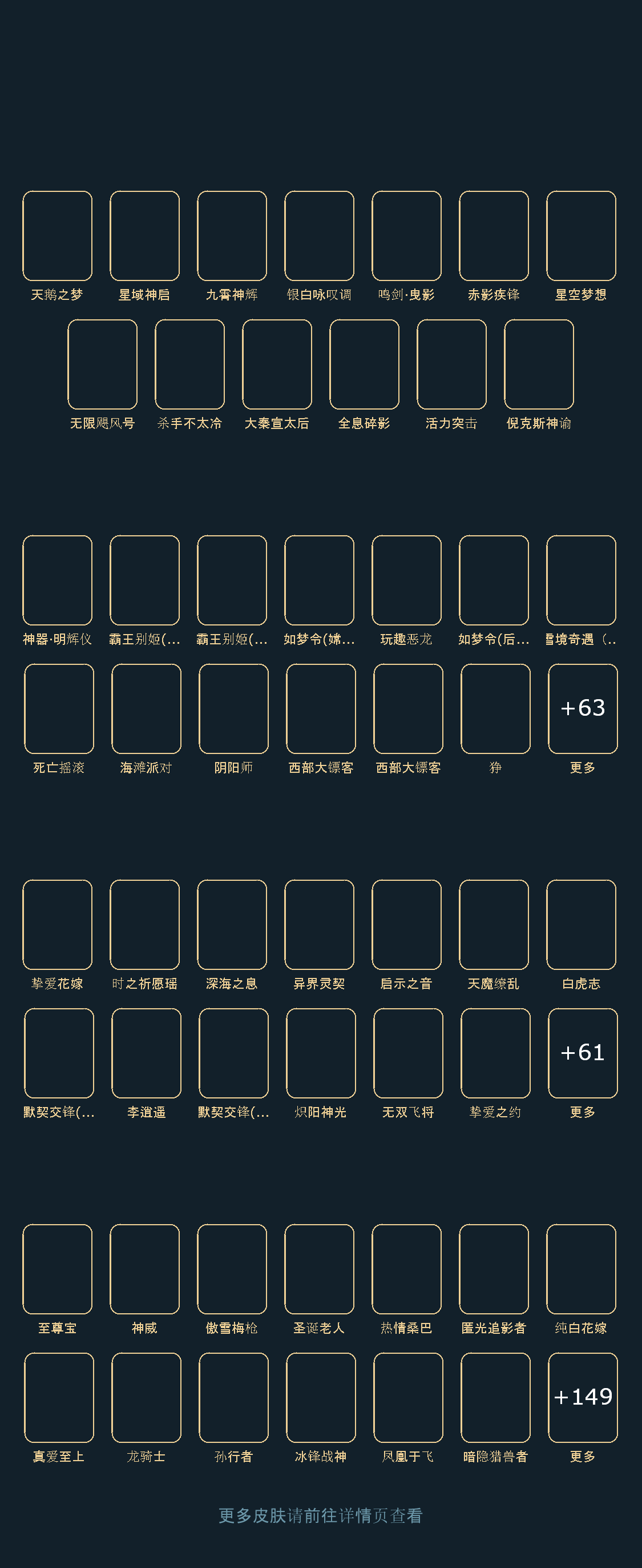 贵族等级V10,典藏皮肤数13,纯白花嫁/天魔缭乱/至尊宝/真爱至上/圣诞老人/热情桑巴/梅西/青龙志/白虎志/朱雀志/久胜战神/飞衡/倪克斯神谕/匿光追影者/鸣剑·曳影/星域神启/李逍遥/武圣/玉兔公主/补天/异界灵契/神威/启示之音/傲雪梅枪/时雨天司