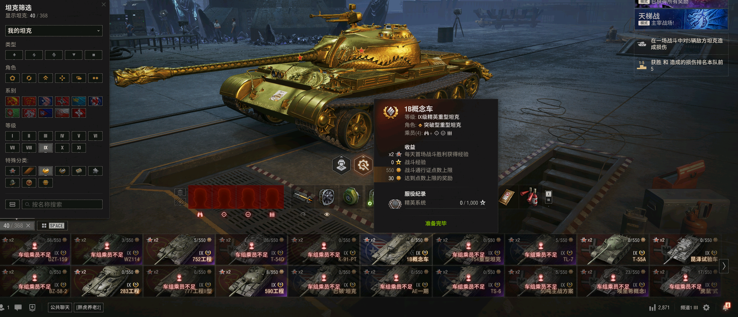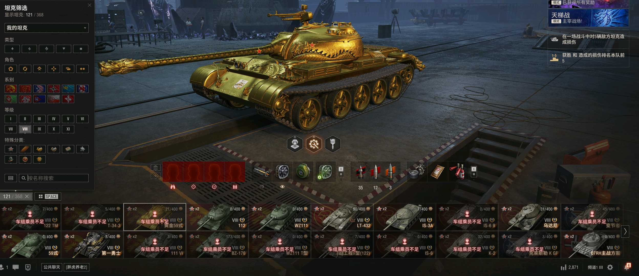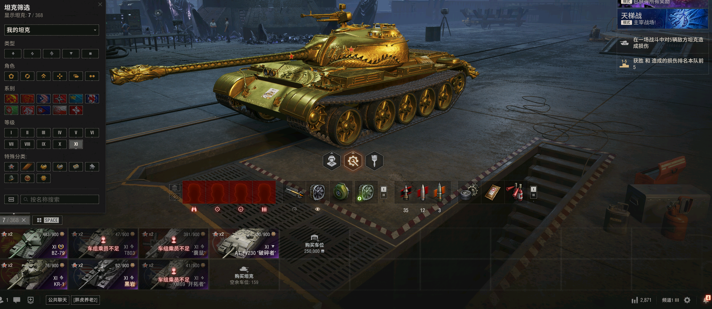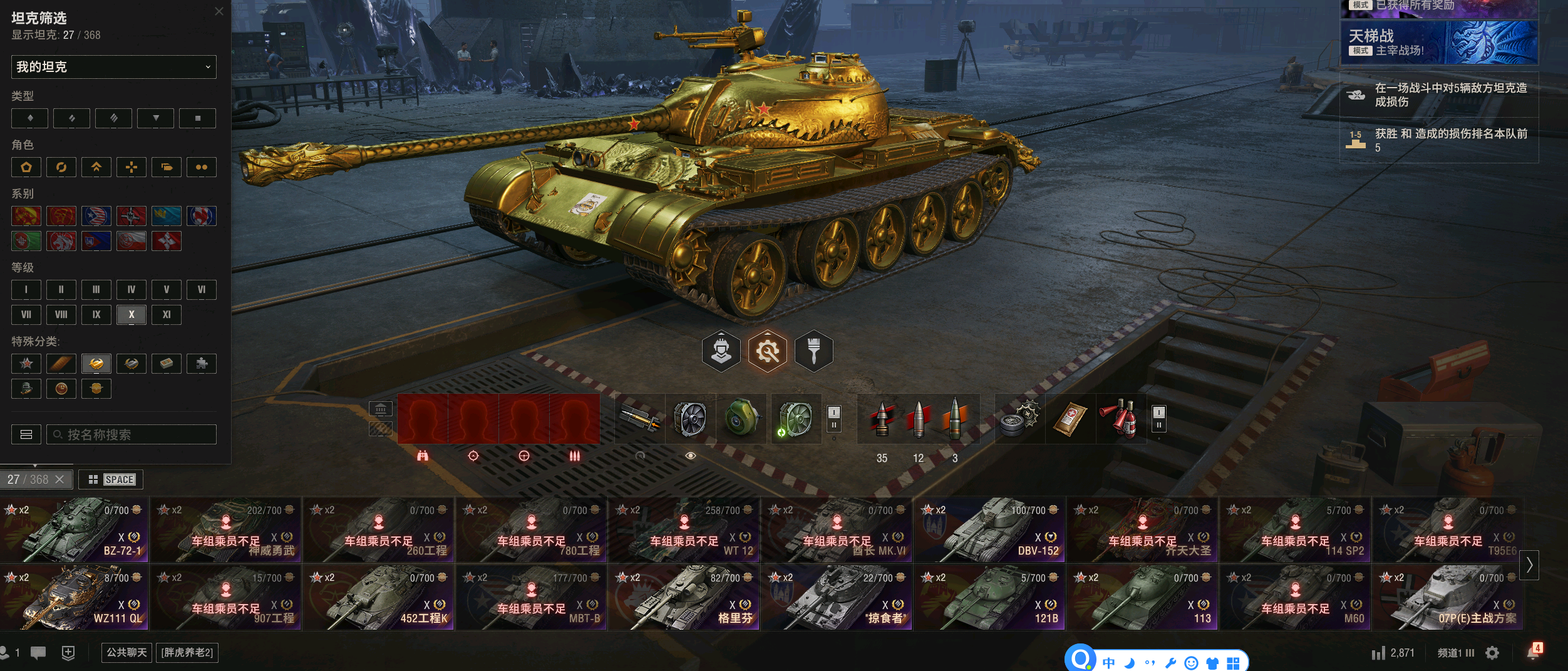 10级金币车掠食者,万酋,齐天大圣,格里芬,白云,麒麟,bz721,神威勇武,907,260,452k,780,mbtb,dbv152,121b,113,114sp2,m60,t95e6,07pe主站,vk7201,伏羲155,cc狮,威克斯3,215b,183,哥特