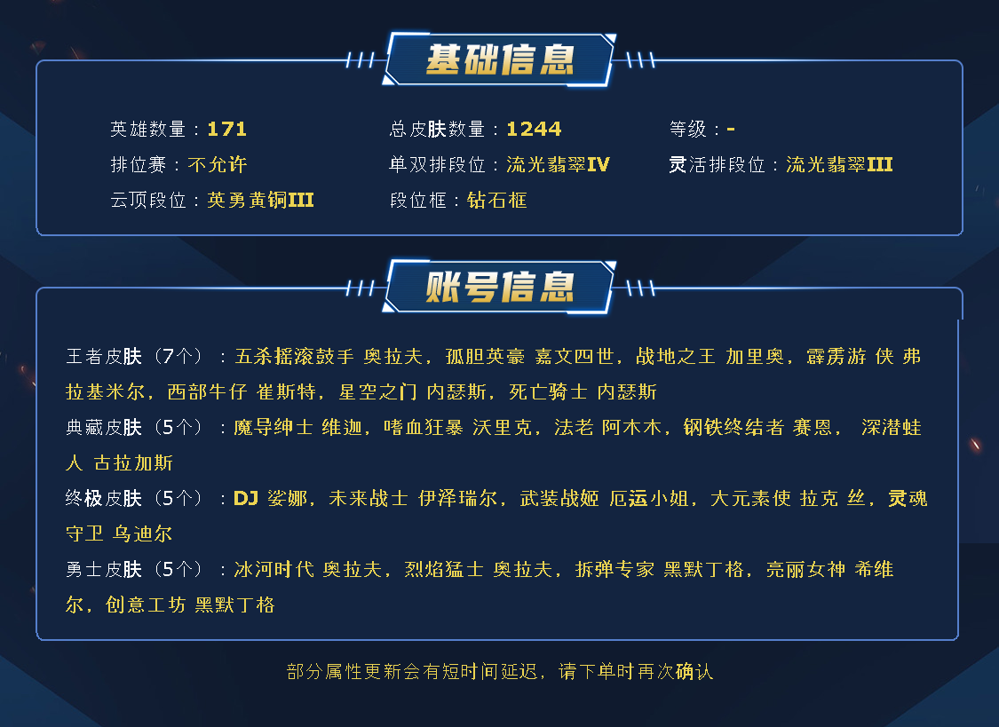 号主薇:DDdarrenn 可直接找号主扫 ~~出现网络异常~~多登入几次即可 ~~喜欢记得收藏~~可排位~~极品号低价出租|超级好的体验丨记得收藏 优惠出租 禁止挂机逃跑 违者一定举报拉黑处理 举报拉黑会禁止租号 谢谢了 千万别挂机逃跑~