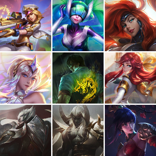 【重要皮肤】双城之战2指挥官凯特琳至臻 北极星钢影卡蜜尔至臻 心之钢永恩至臻 魂蔷薇烈娜塔至臻 玉剑传说琴仙子至臻 斗魂觉醒派克至臻 灵魂莲华易至臻 海珀利安小队X09星环灵风迦娜至臻 星之守护者辛德拉至臻 海之歌萨勒芬妮至臻 月蚀骑士赛娜至臻 幻灵战斗猫金克丝至臻 神凰行者烈羽焰凰霞至臻 女帝黛安娜至臻 魔女婕拉至臻 魔女乐芙兰至臻 奥术师佐伊至臻 未来战士卢锡安至臻 真实伤害赛娜至臻 星之守护者索拉卡至臻 灵魂莲华提莫至臻 灵能特工伊泽瑞尔至臻 源计划逆流塞拉斯至臻 源计划阴劫至臻 暗星墨菲特至臻 黑夜使者凯隐至臻 神龙尊者均衡之龙沃利贝尔至臻 KDA二代卡莎至臻 KDA一代卡莎至臻 战斗学院拉克丝至臻 烈焰美人薇恩至臻 电玩女神凯特琳至臻 魅惑女巫厄运小姐至臻 魅惑女巫厄运小姐2022至臻 星之守护者妮蔻至臻 星之守护者妮蔻2022至臻 真实伤害奇亚娜至臻 真实伤害奇亚娜2022至臻 玉剑传说武剑仙至臻 玉剑传说武剑仙2022至臻 腥红之月亚托克斯至臻 腥红之月亚托克斯2022至臻 未来战士锤石至臻 未来战士锤石2022至臻 黑夜使者李青至臻 黑夜使者李青2022至臻 海克斯科技瑟庄妮 海克斯科技雷克顿 海克斯科技斯维因 海克斯科技吉格斯 海克斯科技玛尔扎哈 海克斯科技嘉文四世 水晶圣骑艾希 黎明使者卡尔玛 摄魂使者薇恩 新创战纪希维尔 胜利之王泰达米尔 创星之灵璐璐 暗星卡尔玛 黑夜使者弗拉基米尔 安妮梦游仙境 电玩女神厄运小姐 电玩勇者锐雯 电玩女神阿狸 星之守护者伊泽瑞尔 神凰行者幽羽玄凰萨勒芬妮 海珀利安小队Z01猎户座卢锡安 海珀利安小队Y03权天使卡蜜尔 玉剑传说舞龙卫 玉剑传说翼剑仙 灵能特工易 龙的传人李青 神龙烈焰金克丝 北辰之威内瑟斯 南天之怒沃里克 定海神珍孙悟空 张辽文远 烈焰美人薇恩 神龙之翼库奇 胜利枪神卢锡安 胜利之剑亚托克斯 甜心之羽霞 甜心之翎洛 甜心宝贝安妮 觅心女王艾希 觅心猫猫悠米 水晶玫瑰婕拉 水晶玫瑰斯维因 圣诞捣蛋鬼金克丝 冬季仙境卡尔玛 冰雪女神辛德拉 魄罗骑士瑟庄妮 平安夜女神娑娜 圣诞糖果棒厄运小姐 魅惑女巫莫甘娜 魅惑女巫崔丝塔娜 魅惑女巫奈德丽 大魔法锅布里茨 灵魂收割者索拉卡 南瓜头王子阿木木 泳池派对佐伊 泳池派对奥莉安娜 泳池派对塔莉垭 泳池派对厄运小姐 泳池派对塔里克 泳池派对雷克顿 泳池派对布隆 电玩战魂赫卡里姆 鸡里奥 制胜金靴李青 制胜金球拉莫斯 FPX锤石 FPX薇恩 FPX李青 FPX普朗克 FPX墨菲特 SSG纳尔 SSG塔莉垭 SSG嘉文四世 SSG伊泽瑞尔 SKTT1扎克 SKTT1辛德拉 SKTT1阿利斯塔 SKTT1阿兹尔 SKTT1雷克顿 SSW雷恩加尔 SSW泰隆 SSW图奇 SSW辛吉德 SKTT1贾克斯 SKTT1劫 SKTT1婕拉 暗杀星奥莉安娜 暗杀星蒙多 暗杀星努努和威朗普 暗杀星伊泽瑞尔 暗杀星慎 Fnatic迦娜 Fnatic库奇 Fnatic嘉文四世 冰雪节辛吉德 冰雪兽纳尔 防暴士兵格雷福斯 防暴士兵辛吉德 冠军典狱长锤石 冠军掠夺者卡兹克 冠军之矛卡莉丝塔 冠军之刃锐雯2016 鬼影重重魔腾 海贼瑞兹 胡桃夹子萨科 警用试作体K9内瑟斯 蓝色忧郁崔斯特 魅惑女巫娜美 魅惑女巫悠米 密林猎手提莫 南瓜头费德提克 圣诞精灵崔丝塔娜 圣诞开心鬼提莫 圣诞狂欢基兰 圣诞老人古拉加斯 圣诞玩偶波比 糖果使徒费德提克 外星装甲库奇 无头骑士赫卡里姆 喜庆之树茂凯 邪恶圣诞老人维迦 幸福女神乐芙兰 雪默丁格 雪装奈德丽 野兽猎人德莱文 野兽猎人瑟庄妮 野兽猎人泰达米尔 英勇玩具兵普朗克 永恒之森乐芙兰 勇者阿狸 征服者卡尔玛 冠军之箭艾希 阿木木主人不要我了 2021全球总决赛嘉文四世 波比的巧克力工坊 地底世界崔斯特 十周年纪念安妮 神凰行者瑞羽圣凰艾尼维亚 DJ娑娜 大元素使拉克丝 武装战姬厄运小姐