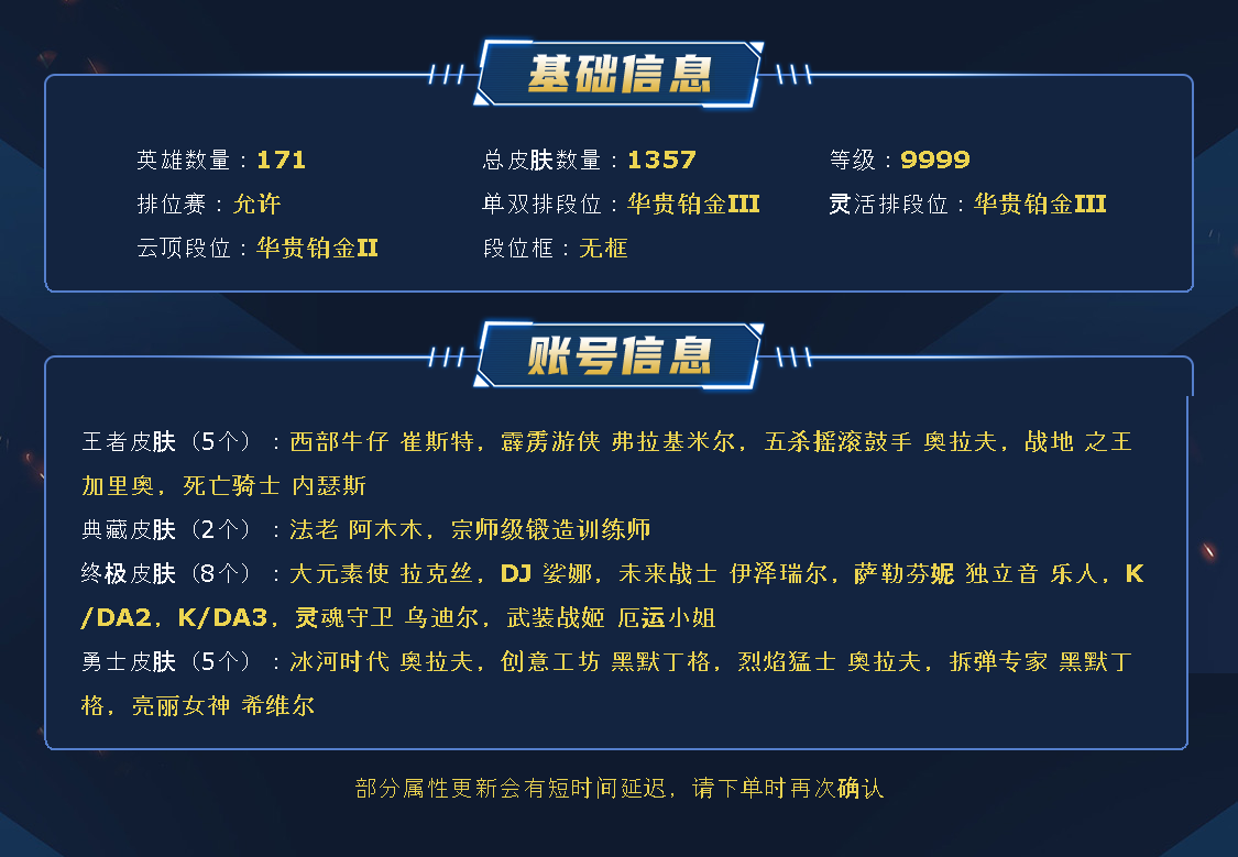 ~~喜欢记得收藏~~可排位~~1202皮全英雄~~租之前尽量查一下游戏ID,确保段位是您需要的,避免浪费您的时间~~请勿挂机逃跑故意送人头,谢谢合作,谢谢~~