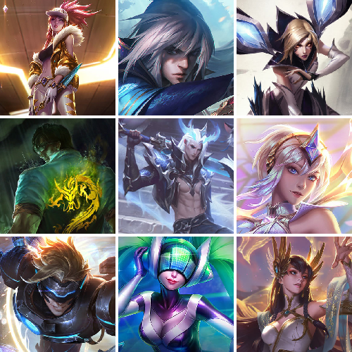 【重要皮肤】灵魂莲华易至臻 海珀利安小队X09星环灵风迦娜至臻 星之守护者辛德拉至臻 西部魔影猎天使恶魔泰隆至臻 幻灵战斗猫金克丝至臻 青花瓷拉克丝至臻 女帝黛安娜至臻 魔女婕拉至臻 魔女乐芙兰至臻 真实伤害亚索至臻 灵能特工伊泽瑞尔至臻 福牛守护者菲奥娜至臻 源计划逆流塞拉斯至臻 王国机神玄武盖伦至臻 神龙尊者炎龙瑟提至臻 黑夜使者凯隐至臻 神龙尊者均衡之龙沃利贝尔至臻 征服者贾克斯至臻 KDA二代卡莎至臻 KDA一代卡莎至臻 KDA卡莎2022至臻 KDA阿卡丽至臻 KDA阿卡丽2022至臻 烈焰美人薇恩至臻 玉剑传说武剑仙至臻 玉剑传说武剑仙2022至臻 黑夜使者李青至臻 黑夜使者李青2022至臻 灰烬骑士派克 海克斯科技雷克顿 海克斯科技吉格斯 海克斯科技嘉文四世 海克斯科技崔丝塔娜 黎明使者卡尔玛 零之枪骑赫卡里姆 新创战纪希维尔 胜利女神娑娜 胜利之王泰达米尔 胜利巨口克格莫 冰原狙击凯特琳 钢铁军团拉克丝 养蜂人辛吉德 勇敢的心德莱厄斯 电玩女神厄运小姐 电玩勇者锐雯 电玩女神阿狸 星之守护者伊泽瑞尔 玉剑传说无影 玉剑传说舞剑仙 海珀利安小队Y03权天使卡蜜尔 星之守护者佐伊 灵能特工易 龙的传人李青 替父从军花木兰 神龙烈焰金克丝 美猴王孙悟空 玉净夜叉凯特琳 紫金罗刹莫甘娜 虎痴之拳蔚 张辽文远 烈焰美人薇恩 醒狮克格莫 王国机神苍狼瑟提 王国机神玄武盖伦 福牛守护者厄斐琉斯 胜利女神瑟庄妮 胜利之树茂凯 胜利机器人布里茨 胜利女神奥莉安娜 胜利枪神格雷福斯 胜利枪神卢锡安 胜利之剑亚托克斯 穿心之剑菲奥娜 觅心魔灵奥莉安娜 觅心女王艾希 幽梦玫瑰辛德拉 幽梦玫瑰泰隆 水晶玫瑰斯维因 冬境仙灵索拉卡 冬季仙境奥莉安娜 圣诞老人布隆 冰雪风暴希维尔 冬季仙境卡尔玛 狂心冰王图奇 冰雪女神辛德拉 魄罗骑士瑟庄妮 平安夜女神娑娜 圣诞糖果棒厄运小姐 魅惑女巫崔丝塔娜 伯爵卡萨丁 死亡誓约卡特琳娜 死亡誓约维克托 灵魂收割者索拉卡 克烈古拉伯爵 勇敢的心德莱厄斯 海之歌艾希 泳池派对塔莉垭 泳池派对厄运小姐 泳池派对塔里克 泳池派对菲奥娜 泳池派对格雷福斯 泳池派对李青 泳池派对雷克顿 电玩战魂赫卡里姆 御星魔矢艾希 克格汪 EDG厄斐琉斯 EDG佛耶戈 EDG格雷福斯 EDG悠米 EDG佐伊 FPX普朗克 FPX墨菲特 iG卡蜜尔 iG卡莎 iG艾瑞莉娅 iG乐芙兰 iG菲奥娜 SSG霞 SKTT1烬 SKTT1艾克 SKTT1阿利斯塔 SKTT1卡莉丝塔 SKTT1瑞兹 SKTT1阿兹尔 SKTT1伊莉丝 SKTT1雷克顿 SSW锤石 SSW雷恩加尔 SSW泰隆 SSW图奇 SSW辛吉德 SKTT1贾克斯 SKTT1劫 暗杀星奥莉安娜 暗杀星蒙多 暗杀星努努和威朗普 暗杀星伊泽瑞尔 暗杀星慎 Fnatic迦娜 Fnatic库奇 Fnatic古拉加斯 Fnatic卡尔萨斯 冰雪节格雷福斯 冰雪节玛尔扎哈 冰雪兽纳尔 防暴士兵格雷福斯 防暴天使凯尔 钢铁之翼艾尼维亚 冠军典狱长锤石 冠军之刃锐雯 冠军之刃锐雯2016 冠军之隐劫 鬼影森森茂凯 鬼影重重魔腾 红桃杰克崔斯特 胡桃夹子萨科 惊悚派对费德提克 警用试作体K9内瑟斯 蓝色忧郁崔斯特 密林猎手提莫 南瓜头费德提克 女猎手希维尔 破空枪骑孙悟空 圣诞精灵崔丝塔娜 圣诞开心鬼提莫 圣诞狂欢基兰 圣诞狂欢努努和威朗普 圣诞老人古拉加斯 圣诞玩偶波比 圣诞驯鹿克格莫 糖果使徒费德提克 卧虎藏龙贾克斯 喜庆之树茂凯 邪恶圣诞老人维迦 幸福女神乐芙兰 雪默丁格 雪装奈德丽 野兽猎人瑟庄妮 英勇玩具兵普朗克 永恒之森乐芙兰 勇者阿狸 勇者奈德丽 暗影沃里克 阿木木主人不要我了 波比的巧克力工坊 地底世界崔斯特 都铎王朝图奇 十五周年纪念希维尔 十周年纪念安妮 源代码乐芙兰 神凰行者瑞羽圣凰艾尼维亚 胜利凤凰艾尼维亚 DJ娑娜 大元素使拉克丝 灵魂守卫乌迪尔 未来战士伊泽瑞尔 武装战姬厄运小姐 绝息圣堂洛
