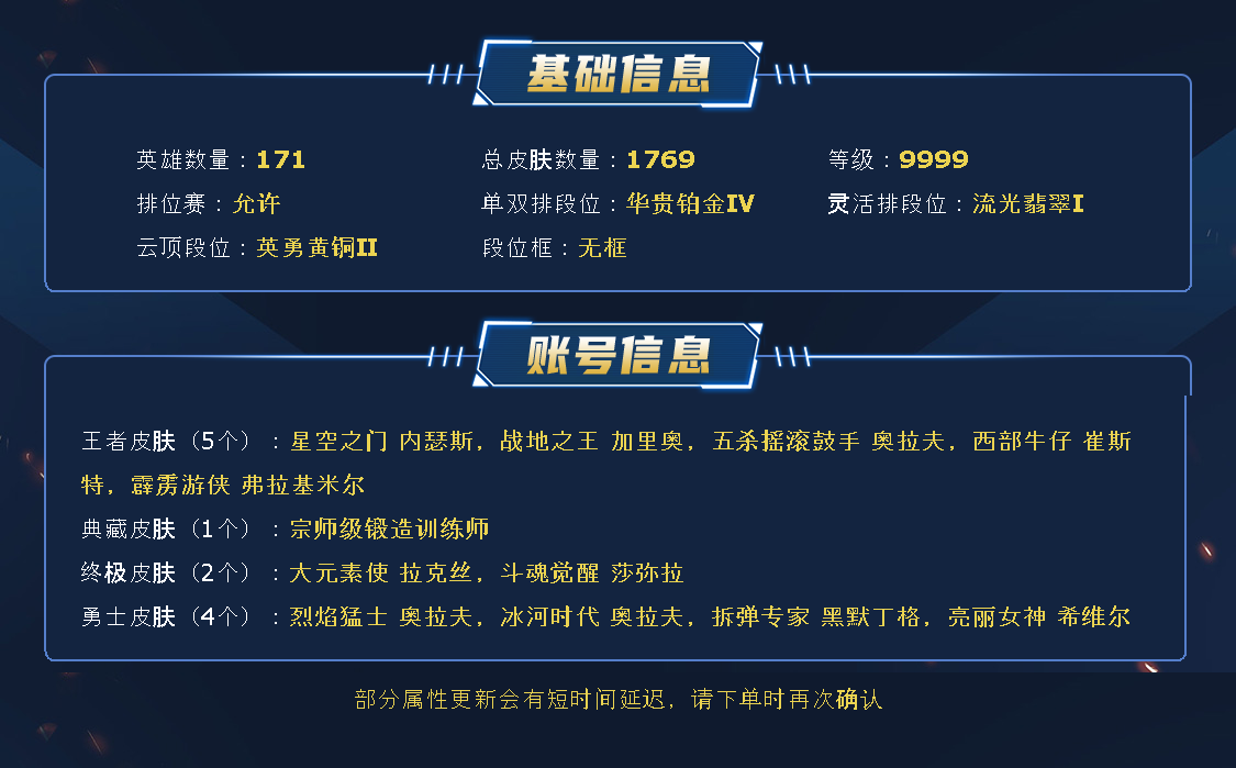 ~~喜欢记得收藏~~可排位~~1743皮全英雄~~租之前尽量查一下游戏ID,确保段位是您需要的,避免浪费您的时间~~请勿挂机逃跑故意送人头,谢谢合作,谢谢~~