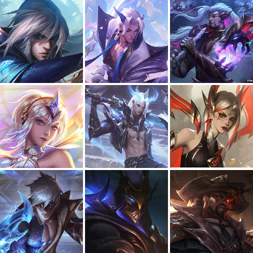 【传说皮肤】泳池派对吉格斯 偶像歌手阿狸 西部魔影永恩 丧尸布兰德 红色男爵库奇 屠龙勇士潘森 影执事劫 青花瓷奥瑞利安索尔 战场女武神凯尔 星之守护者卡莎 太空律动猫猫布里和里茨 神拳李青 太空律动律动队长提莫 战斗学院凯特琳 西部魔影卢锡安 战地巨兽科加斯 未来战士凯特琳 青花瓷伊泽瑞尔 奥德赛凯隐 魔女伊芙琳 苍穹之光韦鲁斯 黎明使者永恩 合金巨兽努努和威朗普 电玩女神娑娜 驯龙炮手崔丝塔娜 苹果机器人布里茨 真实伤害艾克 心之钢凯隐 冰川巨兽墨菲特 灌篮高手德莱厄斯 提莫约德尔人的一大步 地狱之门卫士加里奥 黑夜使者亚索 绅士科加斯 大天使长米迦勒凯尔 恶魔男爵瑞兹 最终BOSS维迦 暗星尊烬 源计划林易 钢铁之翼凯尔 西部天使艾希 银河魔装机神兰博 灵魂莲华锤石 神龙尊者夜月幻龙亚索 幻灵战斗队长厄运小姐 冰霜之刃艾瑞莉娅 墨之影武者易 耀星女神拉克丝 铁哥们儿奥拉夫 战地机甲厄加特 宇航员诺提勒斯 神王盖伦 霸天异形卡兹克 律政大亨蒙多 驯龙学者黑默丁格 双重冰晶艾尼维亚 星之守护者拉克丝 光明哨兵格雷福斯 炼狱魔犬内瑟斯 陆地王者4WD布里茨 天煞劫 神王德莱厄斯 源计划联合艾希 霸天零式赛恩 星之守护者金克丝 上古战魂魔腾 黑夜使者索拉卡 金牌主播德莱文 女皇艾希 地狱行者孙悟空 灵魂莲华阿狸 恶魔之刃泰达米尔 战斗学院伊泽瑞尔 神龙尊者圣龙李青 约德尔国队长提莫 焰尾妖狐阿狸 冰霜亚龙希瓦娜 黎明使者锐雯 枯萎之壤泽拉斯 光明哨兵薇恩 灵魂莲华瑟提 源计划超体莫德凯撒 神龙尊者昼日真龙亚索 腥红之月鬼武姬阿卡丽 魔幻卡牌崔斯特