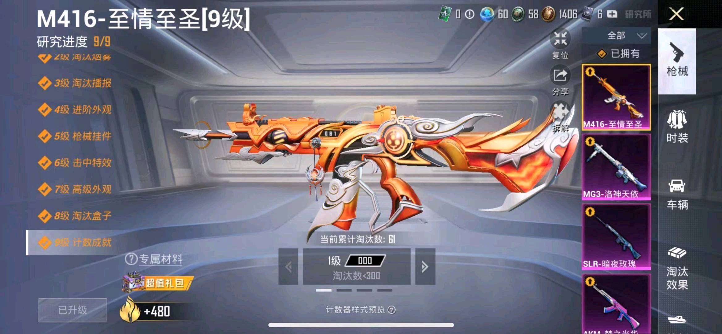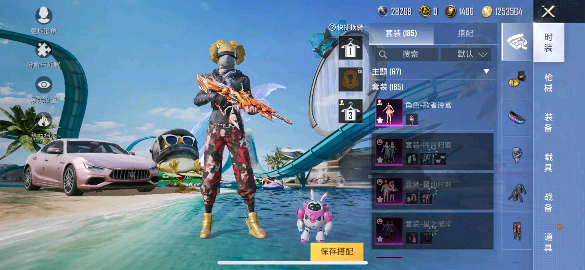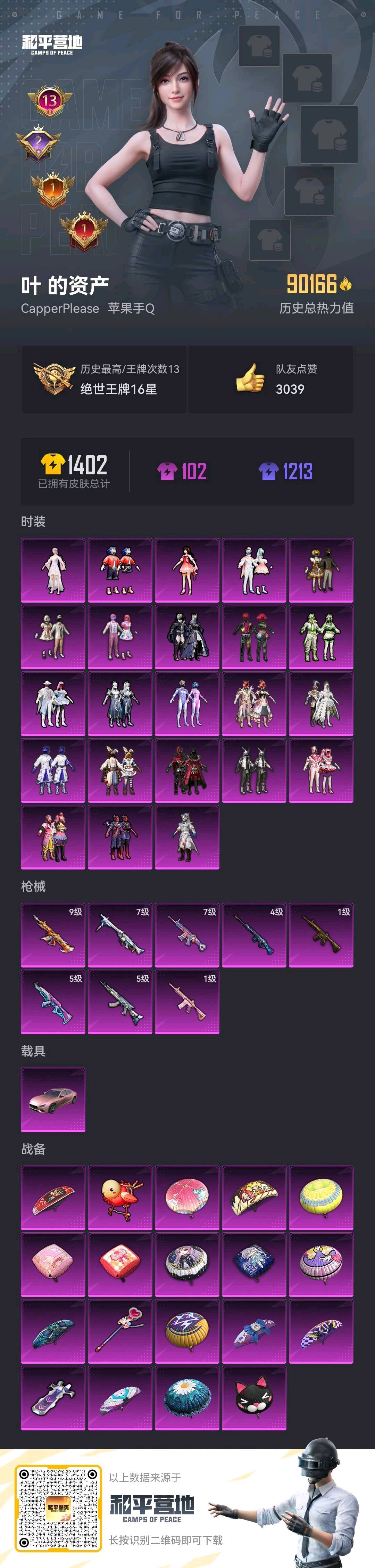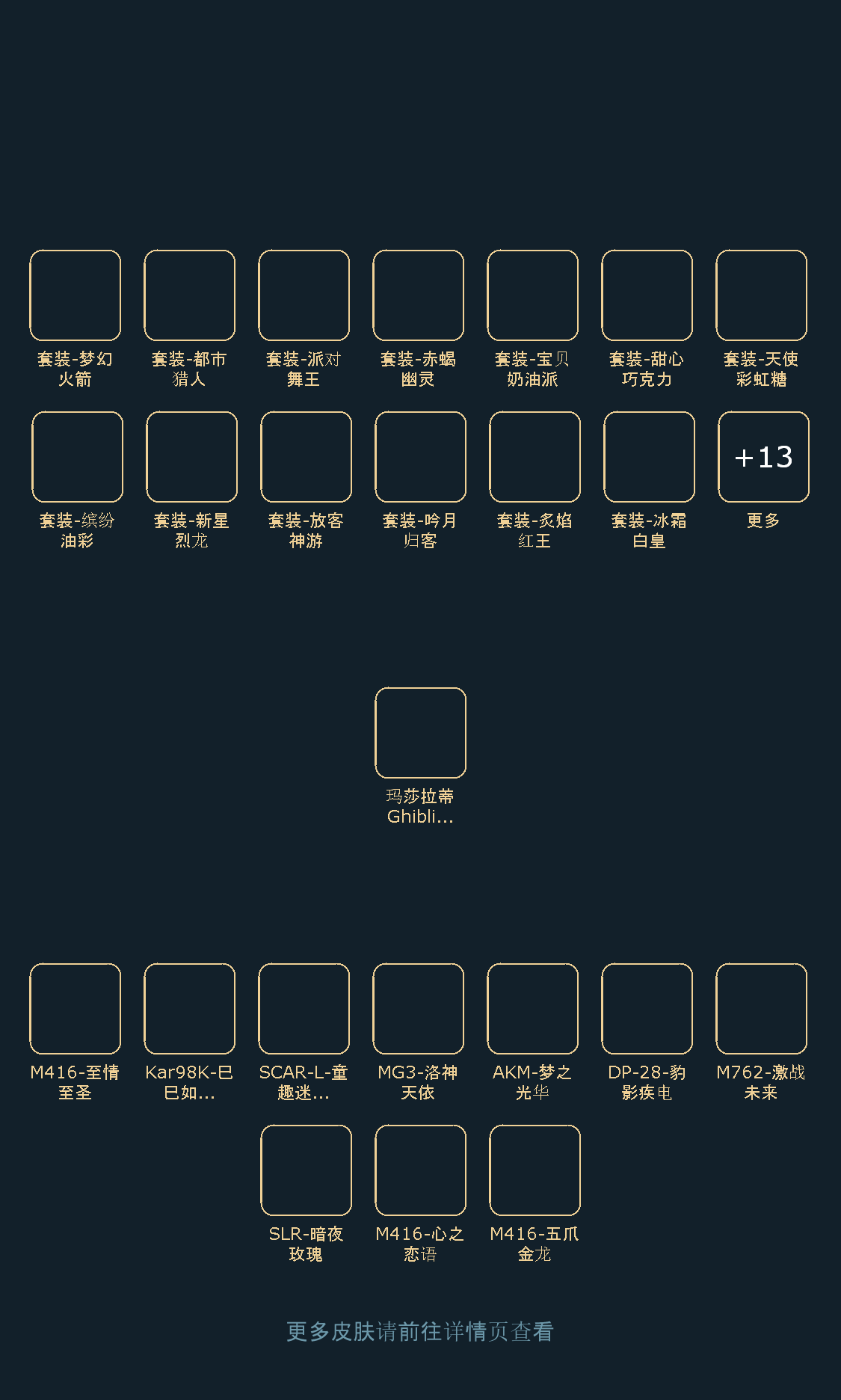 23粉,1载具,201套装,18王牌印记 SCAR-L-童趣迷兔/Kar98K-巳巳如意/M762-激战未来/M416-心之恋语/M416-五爪金龙/MG3-洛神天依/M416-至情至圣/SLR-暗夜玫瑰/AKM-梦之光华/玛莎拉蒂Ghibli(粉)/