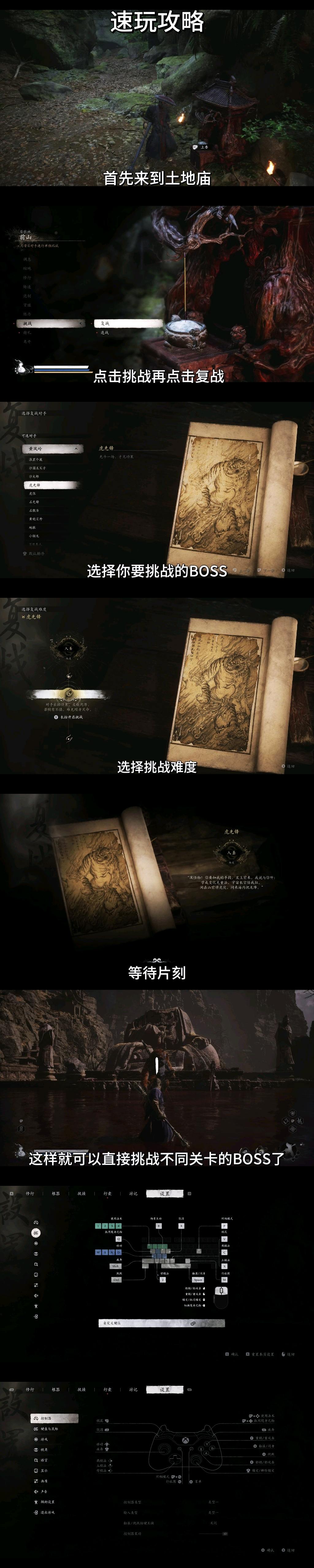 【速玩攻略】找到土地庙,点挑战再点复战就可以跳过剧情直接挑战全部关卡的BOSS了。