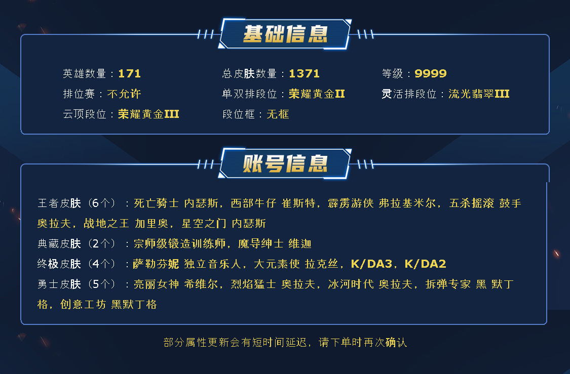 ~~喜欢记得收藏~~可排位~~1349皮全英雄~~租之前尽量查一下游戏ID,确保段位是您需要的,避免浪费您的时间~~请勿挂机逃跑故意送人头,谢谢合作,谢谢~~