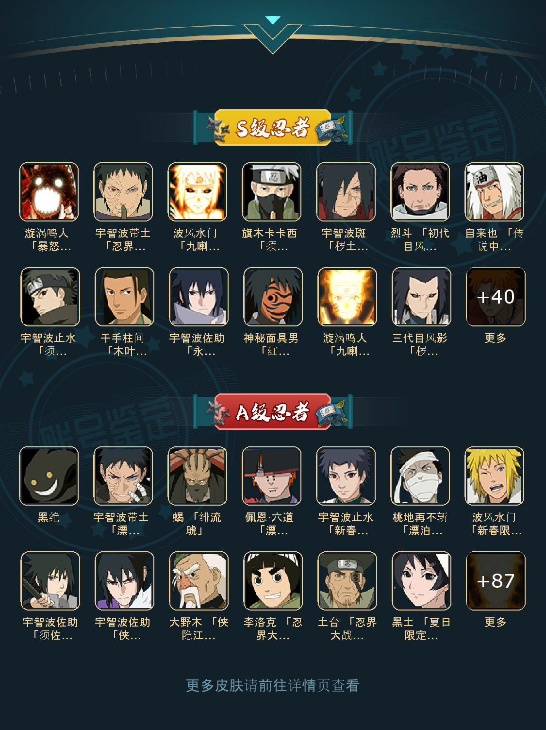 52S 95A 398忍者 宇智波带土「暴怒」/干柿鬼鲛「鲛肌融合」/宇智波佐助「疾风传咒印」/宇智波带土「忍界大战」/宇智波斑「木叶创立」/佩几乎全忍者恩·天道「超」