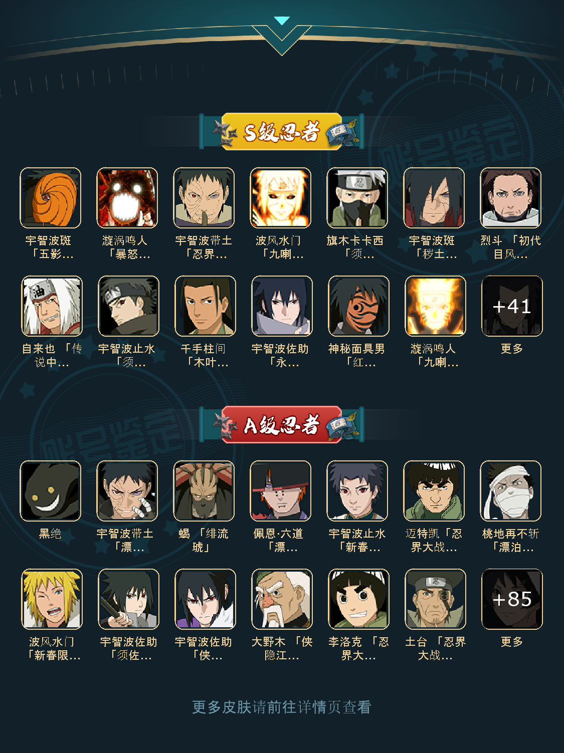 54S 98A 405忍者 宇智波带土「暴怒」/干柿鬼鲛「鲛肌融合」/宇智波佐助「疾风传咒印」/迈特凯「忍界大战」/宇智波带土「忍界大战」/宇智波斑「木叶创立」/佩恩·天道「超」