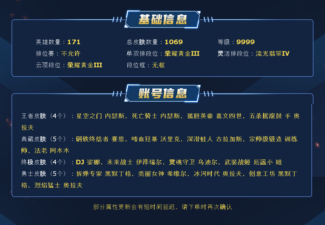 ~~喜欢记得收藏~~可排位~~1039皮全英雄丨759原皮280炫彩~~租之前尽量查一下游戏ID,确保段位是您需要的,避免浪费您的时间~~请勿挂机逃跑故意送人头,谢谢合作,谢谢~~