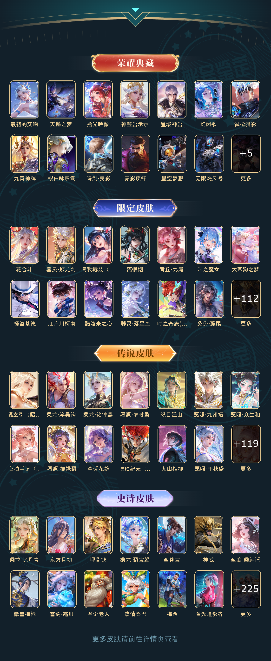贵族等级V10无双贵族,英雄数量125,典藏皮肤数18,皮肤数量723,冰锋战神街头霸王天鹅之梦纯白花嫁天魔缭乱至尊宝杀手不太冷真爱至上圣诞老人王者之锤大秦宣太后凤求凰热情桑巴逐梦之影武陵仙君神奇女侠星空梦想梅西无限飓风号黄金狮子座一生所爱全息碎影大圣娶亲冰霜恋舞曲青龙志白虎志朱雀志活力突击太华久胜战神飞衡梁祝倪克斯神谕白鹤梁神女匿光追影者鸣剑·曳影遇见胡旋龙胆星域神启李逍遥武圣奔雷神使孙行者玉兔公主补天异界灵契神威启示之音傲雪梅枪淬星耀世时雨天司
