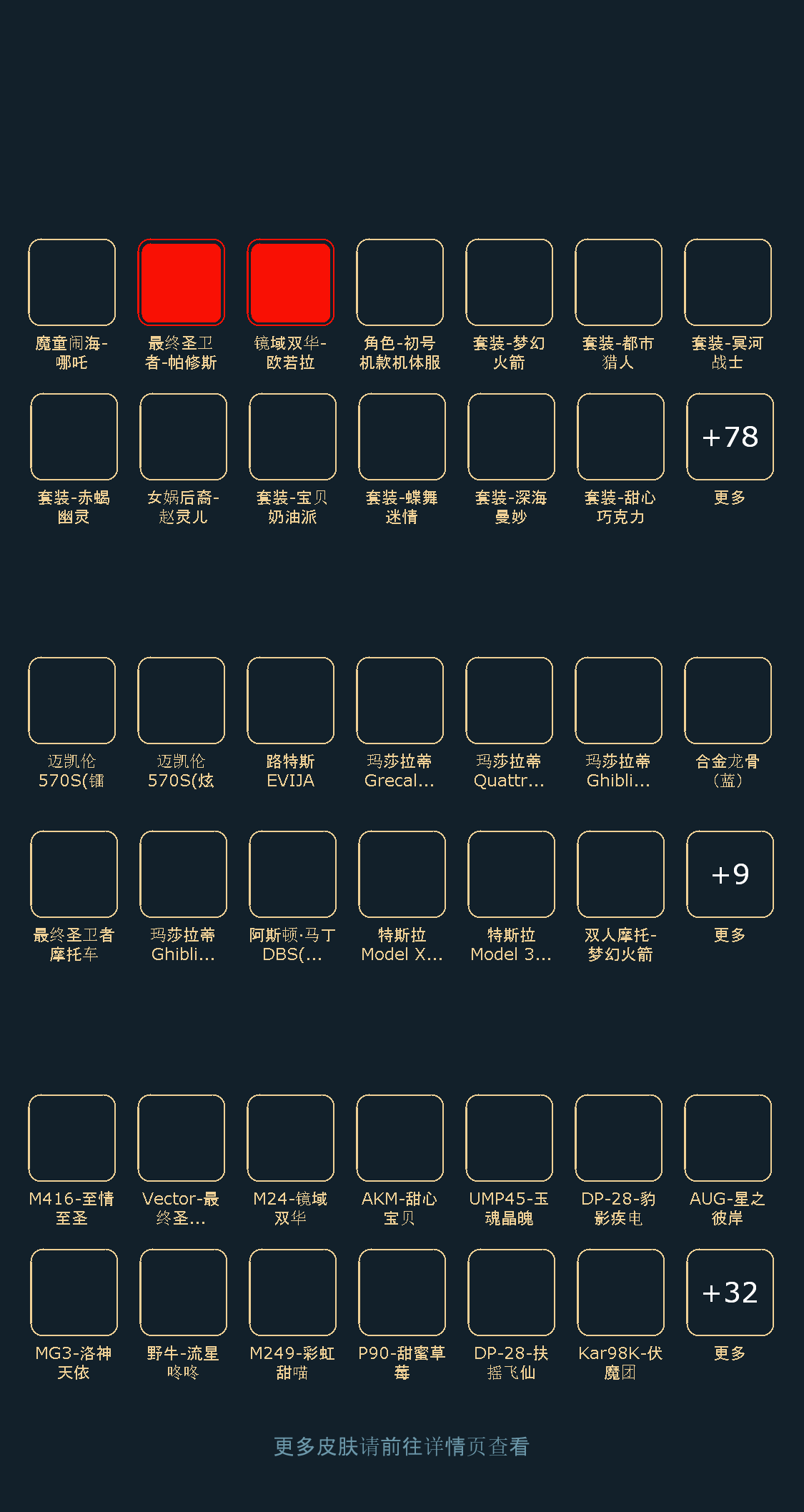 87粉,21载具,347套装,6王牌印记 DP-28-暗夜鎏金/AWM-平天焚空/AKM-盖世英雄/AKM-甜心宝贝/DP-28-扶摇飞仙/Kar98K-伏魔团/M416-风花雪月/AUG-星之彼岸/M249-彩虹甜喵/SCAR-L-甜梦小狐/GROZA-旋转彩虹/P90-甜蜜草莓/M762-激战未来/SCAR-L-桃夭倾城/GROZA-香水柠檬/M416-暖熊萌萌/SPAS-12-音爆索尼克/AWM-橘柚倾心/SCAR-L-天蓬元帅/M416-心之恋语/SCAR-L-纯梦嫁纱/M24-镜域双华/M416-五爪金龙/M24-翩跹演武/M16A4-垂柳戏鸭/AKM-炫紫旋律/DP-28-金蝉行者/MG3-洛神天依/M416-至情至圣/Vector-最终圣卫者/AKM-星际浪客/M762-甜蜜誓约/野牛-青空秋雨/MK20-H-海螺星光/M24-星之信仰/UMP45-恐龙拽拽/M762-苔丝玫瑰/野牛-流星咚咚/汤姆逊-冰川粉黛/AKM-梦之光华/UMP45-玉魂晶魄/UMP45-启明星/兰博基尼Aventador(翡翠绿)/迈凯伦570S(炫冰蓝)/玛莎拉蒂Ghibli(金)/萌喵橘座/双人摩托-双刃魅影(绿)/快艇-自由的鲸/路特斯EVIJA(电光紫)/玛莎拉蒂Ghibli(蓝)/双人摩托-梦幻火箭/玛莎拉蒂Grecale(幻星粉)/最终圣卫者摩托车/合金龙骨(蓝)/阿斯顿·马丁DBS(绿)/迈凯伦570S(镭射紫)/特斯拉Model 3(奇幻紫)/拉轰鸭鸭车/玛莎拉蒂Quattroporte夜幕蓝/特斯拉Roadster(水滴蓝)/玛莎拉蒂Quattroporte幻星粉/玛莎拉蒂Grecale(薄荷绿)/特斯拉Model X(冷光银)/