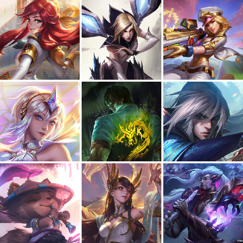 【重要头像】星守阿狸 觅心游侠卢锡安 我麦是开的么 击拳 KDA萨勒芬妮 星守辛德拉炫彩 此志无双羽饰骑士 不错哦 至臻青花瓷丽桑卓 至臻太空律动娜美 至臻海珀利安小队迦娜 至臻海之歌萨勒芬妮 至臻幻灵战斗猫金克丝 至臻神凰行者霞 至臻魅惑女巫莫甘娜 至臻战斗学院蕾欧娜 至臻女帝黛安娜 至臻KDA卡莎