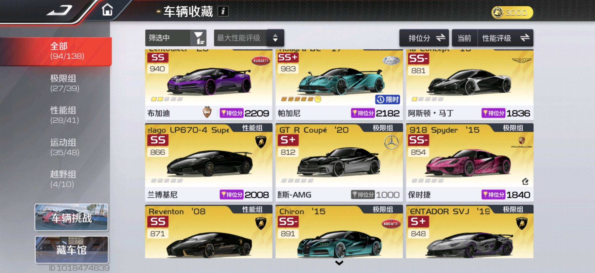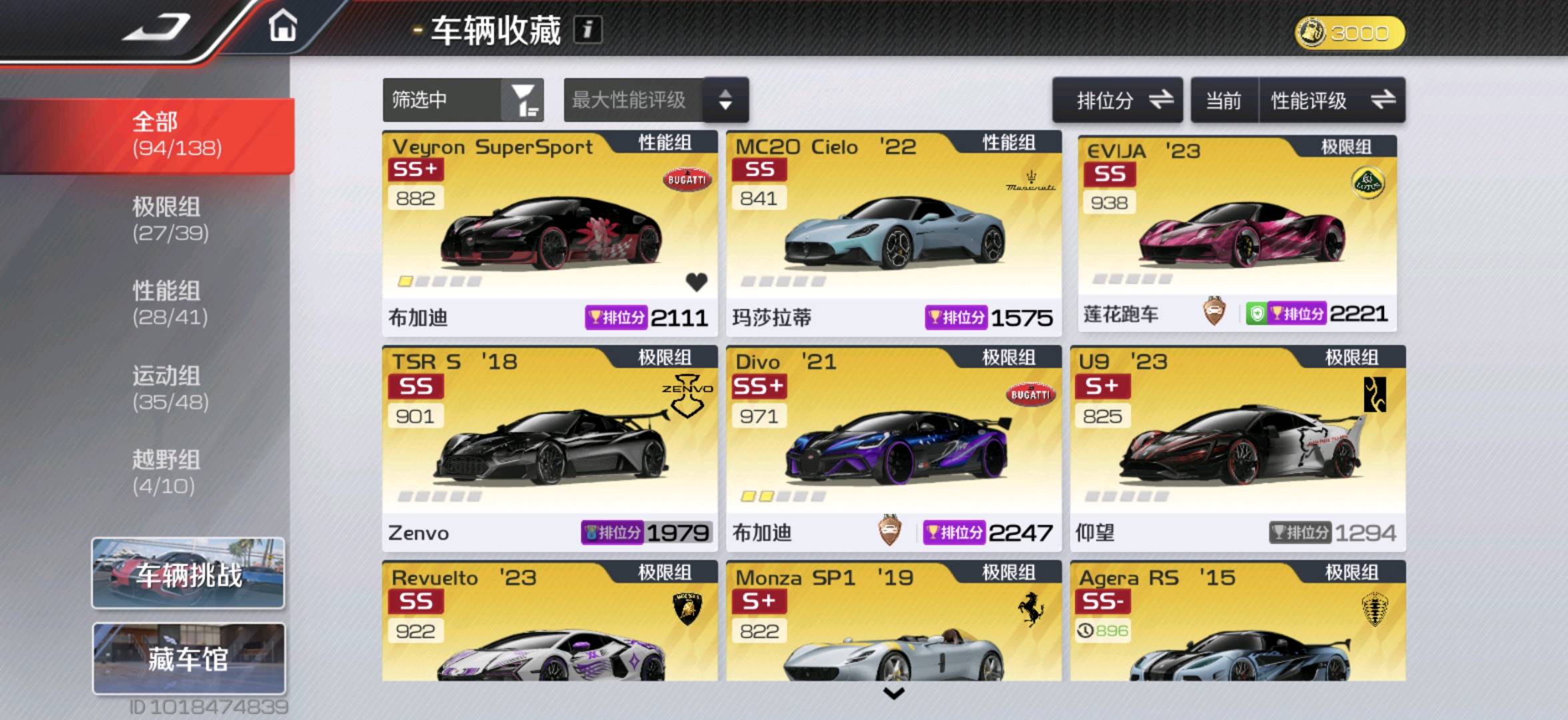 【苹果】 60辆传奇金车40SS评分 超多高阶满改金车基本什么车都有 电莲花玛莎拉蒂自燃王布加迪法拉利兰博基尼
