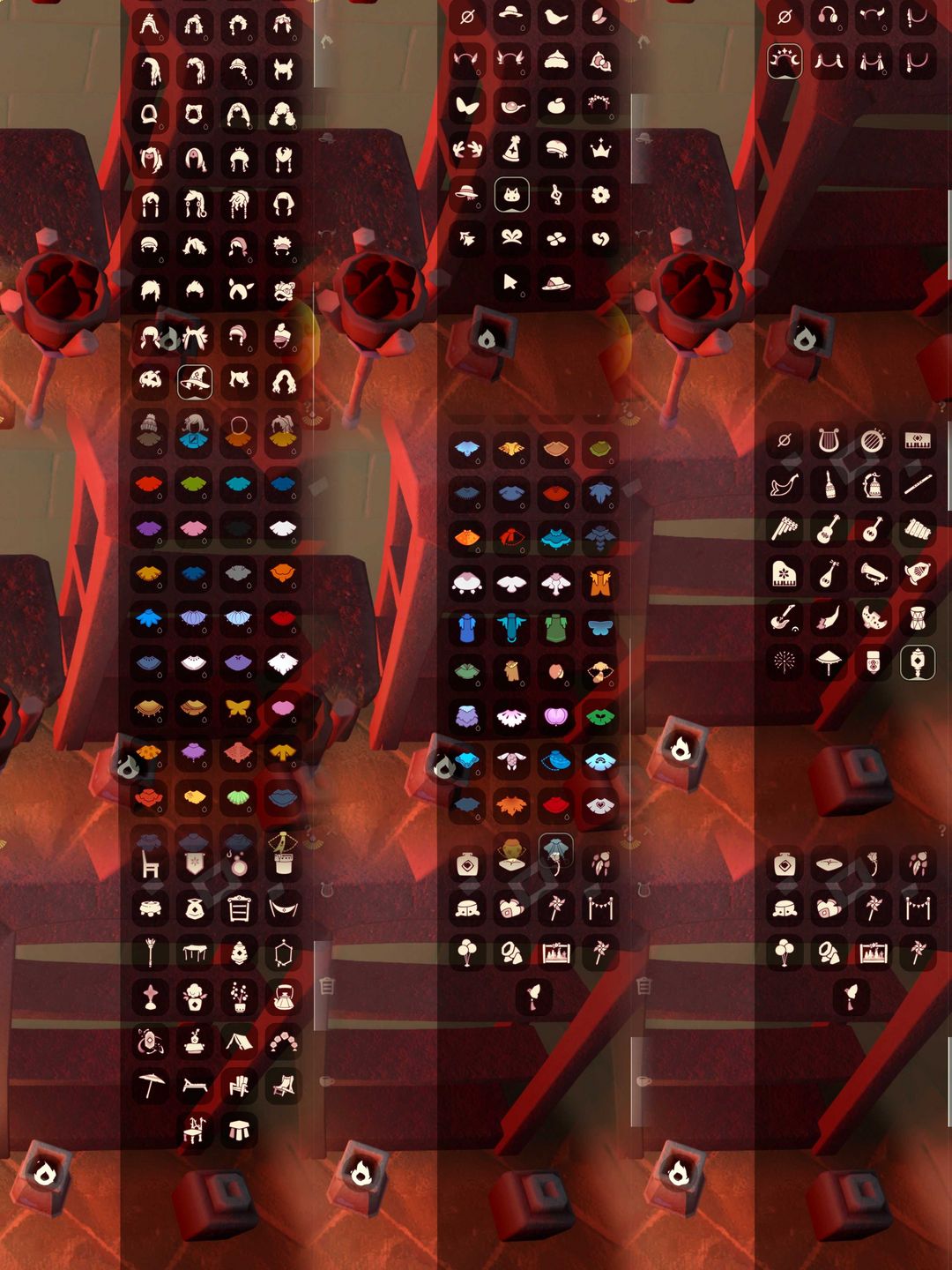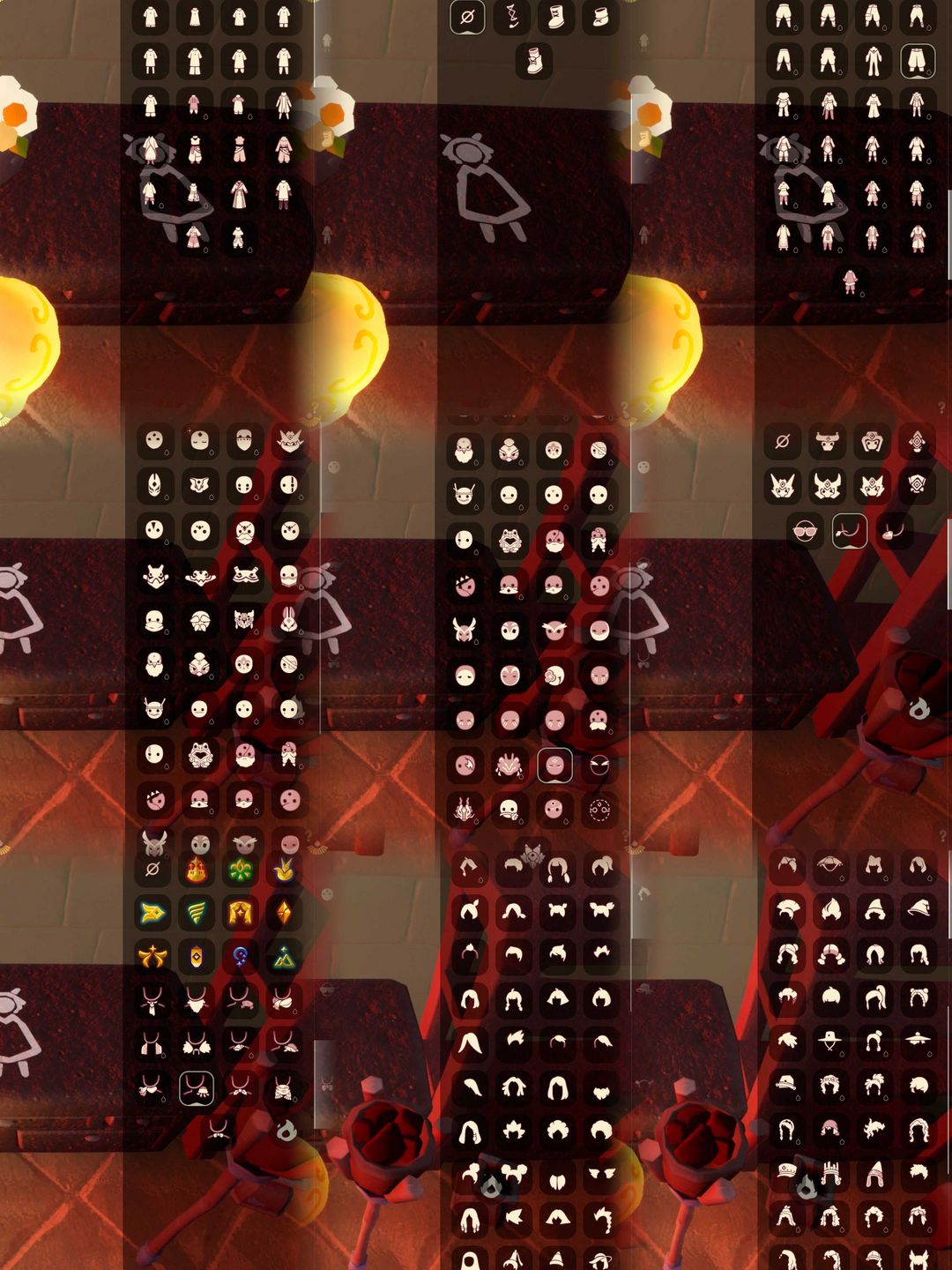 季节:梦想项链|集结项链/集结面具/锅/号角/麻袋斗|王子项链/王子发/王子裤/玫瑰|风项链/双边羽毛/黄蓝羽裤|潜海项链/单边耳坠/暗红斗篷/潜水面具|表演项链/面具/燕尾服/白枭|破晓项链/遥鲲斗/冥龙斗|欧若拉项链/欧若拉发/高领舞裤/碟翼斗|追忆项链/披肩/鲲灯|夜行项链/浣熊面具/拾光项链