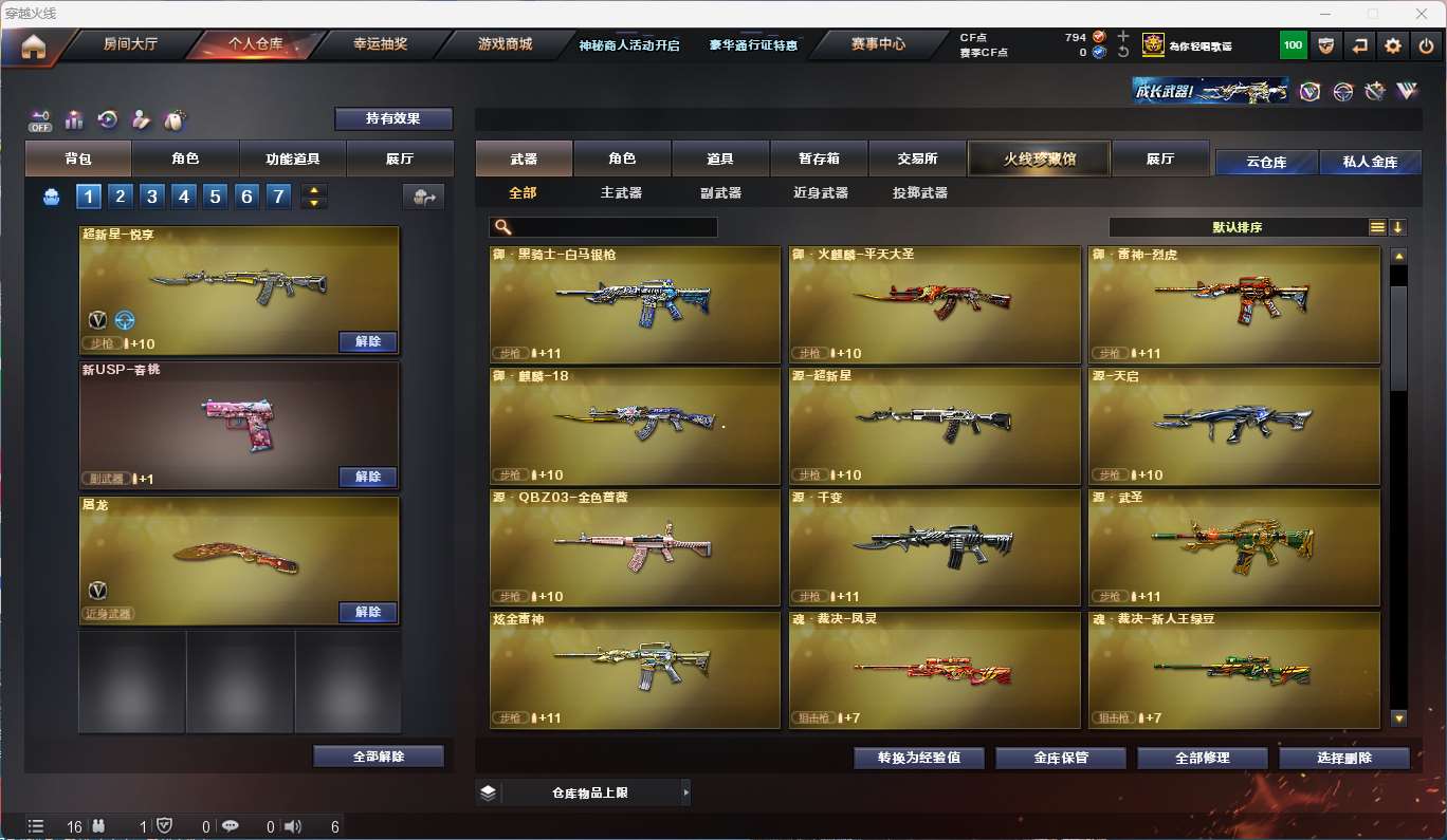 【scar白虎+音效卡】 【qbz金色蔷薇】 【火麒麟+音效卡】 【黑龙】 【雷神+烈虎】 【黑骑士+音效卡】 【毁灭】 【裁决】 【王者风神】 【无影 死神 玫瑰精灵】 【手呛 天神】 【4近战 屠龙 龙啸 擎天 麒麟刺】 【角色 零 云海玲珑】