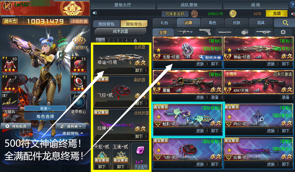 传说:全满配件龙息终焉!500符文神谕•终焉(1700同步率)!血魔!AK天神!