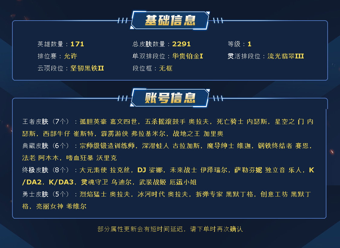 ~~喜欢记得收藏~~可排位~~2284皮全英雄丨1209原皮1075炫彩~~租之前尽量查一下游戏ID,确保段位是您需要的,避免浪费您的时间~~请勿挂机逃跑故意送人头,谢谢合作,谢谢~~
