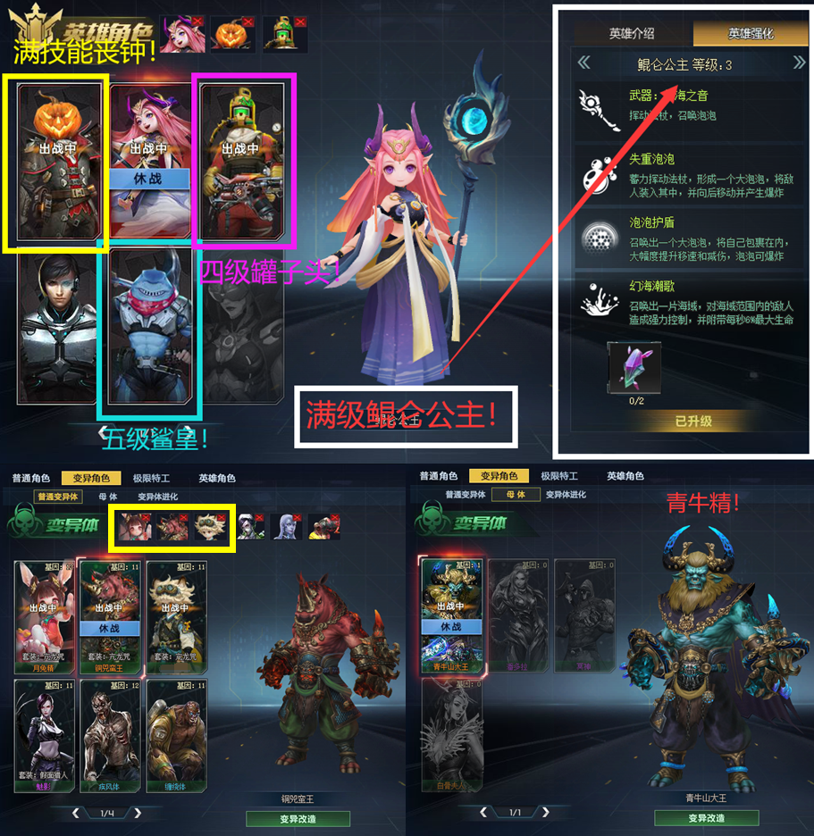 满级鲲仑公主!五级鲨皇!四级罐子头!满技能丧钟!