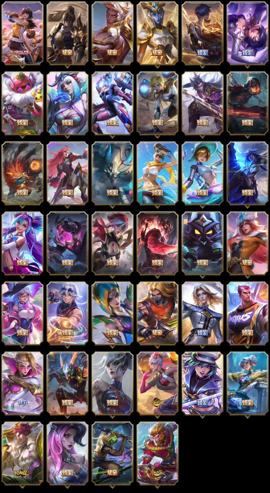 【重要皮肤】殿堂传奇卡莎 莲华温泉厄斐琉斯至臻 灵魂莲华劫至臻 灵魂莲华拉克丝至臻 战斗学院奇亚娜至臻 狼神英灵斯维因至臻 暗星女王黛安娜至臻 魔域梦魇泽丽至臻 T1杰斯至臻 幻灵狮心蕾欧娜至臻 至高天凯尔至臻 西部魔影伊芙琳至臻 青花瓷千珏至臻 天龙之子伊泽瑞尔至臻 北极星钢影卡蜜尔至臻 心之钢永恩至臻 魔女阿卡丽至臻 魂蔷薇烈娜塔至臻 玉剑传说琴仙子至臻 斗魂觉醒派克至臻 DRX亚托克斯至臻 墨之影武者亚索至臻 花仙使者卡特琳娜至臻 绝息圣堂厄运小姐至臻 剪纸仙灵希维尔至臻 青花瓷丽桑卓至臻 北极星使者沃里克至臻 至高天奎桑提至臻 灵魂莲华易至臻 海珀利安小队X09星环灵风迦娜至臻 星之守护者辛德拉至臻 月蚀骑士赛娜至臻 幻灵战斗猫金克丝至臻 青花瓷拉克丝至臻 神凰行者烈羽焰凰霞至臻 女帝黛安娜至臻 战斗学院蕾欧娜至臻 太空律动璐璐至臻 魔女婕拉至臻 魔女乐芙兰至臻 奥术师佐伊至臻 未来战士卢锡安至臻 真实伤害亚索至臻 真实伤害赛娜至臻 星之守护者索拉卡至臻 灵魂莲华提莫至臻 灵能特工伊泽瑞尔至臻 福牛守护者菲奥娜至臻 源计划逆流塞拉斯至臻 王国机神玄武盖伦至臻 暗星墨菲特至臻 神龙尊者炎龙瑟提至臻 黑夜使者凯隐至臻 神龙尊者均衡之龙沃利贝尔至臻 征服者贾克斯至臻 飞升战神潘森至臻 焰执事布兰德至臻 KDA二代卡莎至臻 KDA一代卡莎至臻 KDA阿狸至臻 KDA伊芙琳至臻 KDA伊芙琳2022至臻 KDA阿卡丽至臻 KDA阿卡丽2022至臻 战斗学院拉克丝至臻 烈焰美人薇恩至臻 烈焰美人薇恩2022至臻 电玩女神凯特琳至臻 电玩女神凯特琳2022至臻 魅惑女巫厄运小姐至臻 魅惑女巫厄运小姐2022至臻 星之守护者妮蔻至臻 源计划正义艾瑞莉娅至臻 源计划正义艾瑞莉娅2022至臻 真实伤害奇亚娜至臻 绒毛菲兹至臻 绒毛菲兹2022至臻 玉剑传说武剑仙至臻 玉剑传说武剑仙2022至臻 腥红之月亚托克斯至臻 未来战士锤石至臻 黑夜使者李青至臻 殿堂传奇薇恩 殿堂传奇乐芙兰 水晶巫灵泽拉斯 灰烬守护者慎 灰烬骑士莫德凯撒 灰烬骑士派克 海克斯科技安妮 海克斯科技瑟庄妮 海克斯科技雷克顿 海克斯科技斯维因 海克斯科技吉格斯 海克斯科技波比 海克斯科技嘉文四世 海克斯科技阿利斯塔 海克斯科技拉莫斯 海克斯科技魔腾 新卧虎藏龙贾克斯 水晶泰坦诺提勒斯 水晶掠夺者卡兹克 水晶圣骑艾希 永恒之森奥恩 暗星科加斯 黎明使者卡尔玛 恐惧新星德莱厄斯 零之枪骑赫卡里姆 摄魂使者薇恩 新创战纪希维尔 青年瑞兹 胜利剑圣易 胜利女神娑娜 胜利女神希维尔 胜利之王泰达米尔 胜利巨口克格莫 荣誉使者玛尔扎哈 养蜂人辛吉德 玉剑传说无影 女帝厄运小姐 玉剑传说舞龙卫 玉剑传说翼剑仙 点心宝贝阿木木 天龙之子李青 天龙之子斯莫德 虎头虎脑崔丝塔娜 烈焰仙子黛安娜 龙腾虎跃瑟提 猛虎下山赵信 招财进宝提莫 替父从军花木兰 神龙烈焰金克丝 碧玉之牙卡西奥佩娅 定海神珍孙悟空 紫金罗刹莫甘娜 广寒仙子嫦娥 虎痴之拳蔚 张辽文远 司马懿仲达 王国机神青龙德莱文 王国机神苍狼瑟提 福牛守护者安妮 胜利女神瑟庄妮 胜利之树茂凯 胜利机器人布里茨 胜利女神奥莉安娜 胜利枪神格雷福斯 胜利枪神卢锡安 胜利之剑亚托克斯 黯然心伤阿木木 水晶玫瑰迦娜 甜心之羽霞 甜心之翎洛 穿心之剑菲奥娜 觅心魔灵奥莉安娜 觅心之翼奎因 觅心萝莉金克丝 双城之战2微光实验室辛吉德 北极星使者彗 北极星守望者佐伊 圣诞老人布隆 圣诞老人德莱文 狂心冰王图奇 冰雪女神辛德拉 魄罗骑士瑟庄妮 夺命美人卡特琳娜 圣诞糖果棒厄运小姐 魅惑女巫崔丝塔娜 魅惑女巫奈德丽 死亡誓约卡特琳娜 死亡誓约劫 小恶魔菲兹 海之歌艾希 泳池派对辛德拉 泳池派对奥莉安娜 泳池派对黑默丁格 泳池派对塔莉垭 泳池派对塔里克 泳池派对菲奥娜 泳池派对格雷福斯 克格汪 T1李青 DRX阿卡丽 EDG悠米 FPX普朗克 iG卡蜜尔 iG洛 iG卡莎 iG艾瑞莉娅 iG乐芙兰 iG菲奥娜 SSG嘉文四世 SKTT1扎克 SKTT1烬 SKTT1辛德拉 SKTT1艾克 SKTT1阿利斯塔 SKTT1卡莉丝塔 SKTT1瑞兹 SKTT1阿兹尔 SKTT1伊莉丝 SKTT1雷克顿 SSW锤石 SSW雷恩加尔 SSW泰隆 SSW图奇 SSW辛吉德 SKTT1劫 SKTT1婕拉 SKTT1李青 暗杀星奥莉安娜 暗杀星蒙多 暗杀星努努和威朗普 暗杀星伊泽瑞尔 暗杀星慎 Fnatic迦娜 Fnatic库奇 Fnatic古拉加斯 Fnatic嘉文四世 Fnatic卡尔萨斯 冰雪节格雷福斯 冰雪节辛吉德 防暴机器人布里茨 防暴士兵格雷福斯 防暴士兵辛吉德 防暴天使凯尔 冠军典狱长锤石 冠军之刃锐雯2016 冠军之血希瓦娜 冠军之隐劫 春晖海神卡兹克 鬼影森森茂凯 海贼瑞兹 胡桃夹子萨科 惊悚派对费德提克 警用试作体K9内瑟斯 蓝色忧郁崔斯特 蒙多蒙多 密林猎手提莫 南瓜头费德提克 破空枪骑孙悟空 圣诞精灵崔丝塔娜 圣诞开心鬼提莫 圣诞狂欢基兰 圣诞狂欢努努和威朗普 圣诞老人古拉加斯 圣诞玩偶波比 圣诞驯鹿克格莫 糖果使徒费德提克 外星装甲库奇 卧虎藏龙贾克斯 喜庆之树茂凯 野兽猎人瑟庄妮 野兽猎人泰达米尔 英勇玩具兵普朗克 勇者奈德丽 征服者卡尔玛 征服者诺提勒斯 征服者韦鲁斯 暗影沃里克 魅惑女巫波比 诺斯费拉图弗拉基米尔 阿木木主人不要我了 2022全球总决赛阿兹尔 2021全球总决赛嘉文四世 波比的巧克力工坊 地底世界崔斯特 都铎王朝图奇 十五周年纪念希维尔 十周年纪念安妮