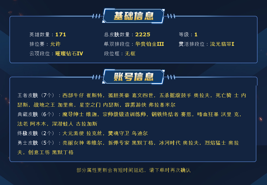 ~~喜欢记得收藏~~可排位~~2215皮全英雄~~租之前尽量查一下游戏ID,确保段位是您需要的,避免浪费您的时间~~请勿挂机逃跑故意送人头,谢谢合作,谢谢~~