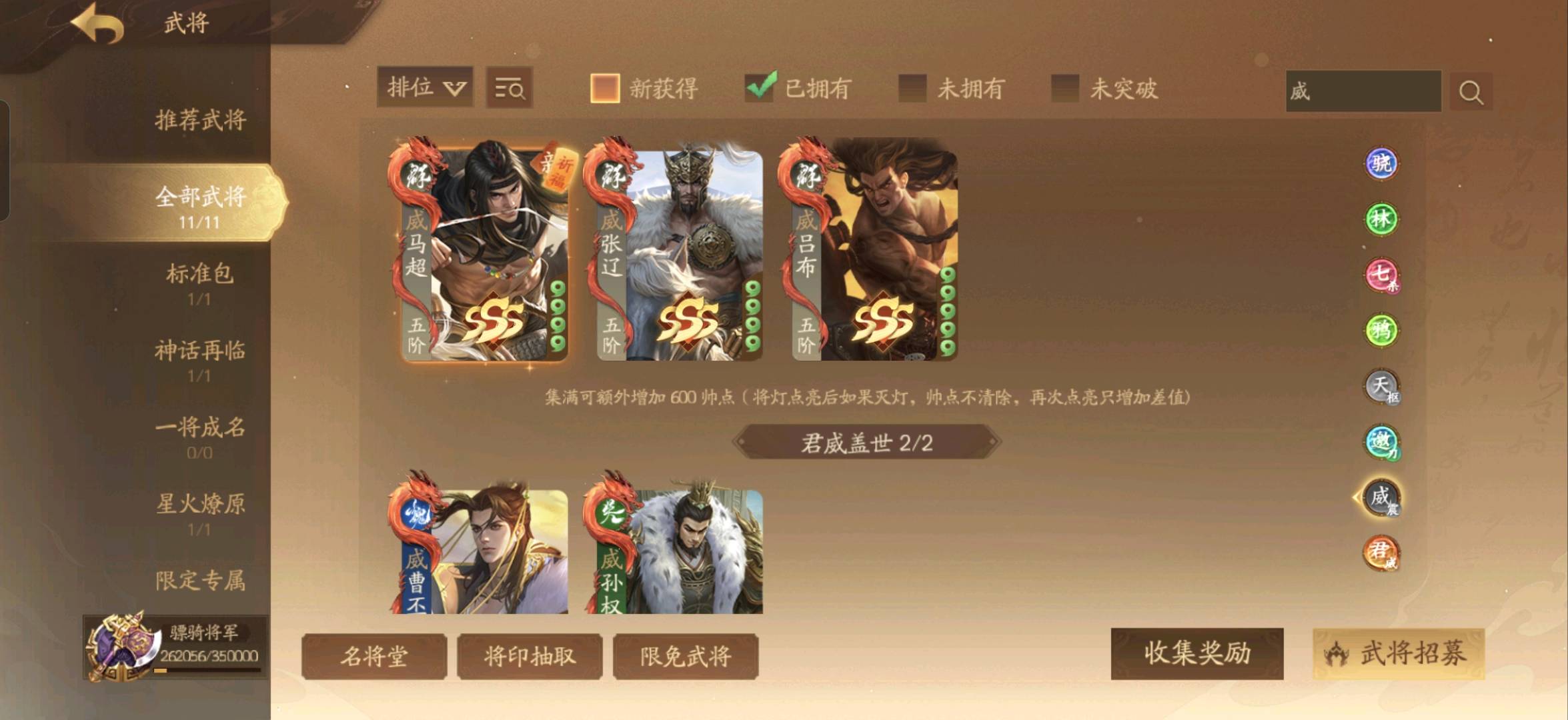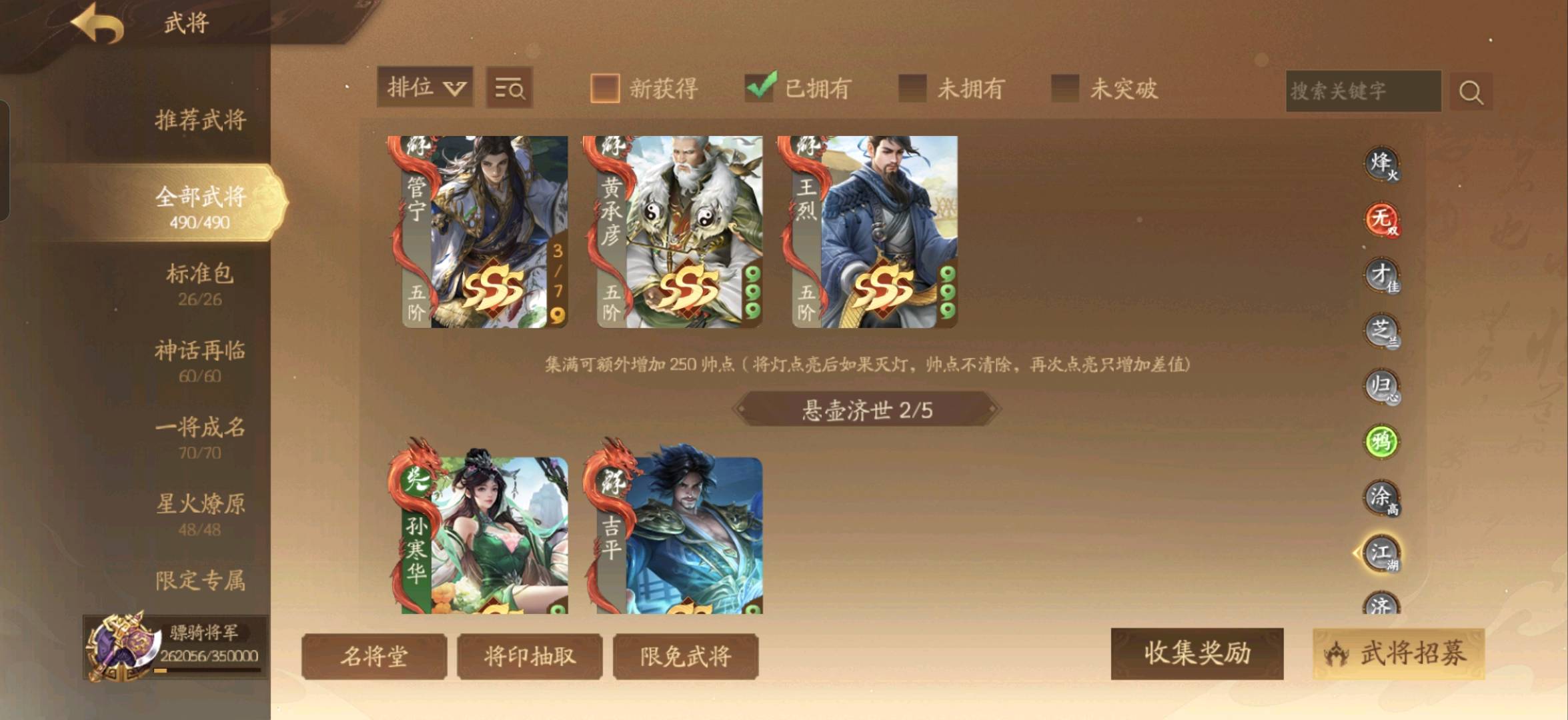 纳贤强将:周宣,司马师,钟毓 ,袁胤,薛灵**,吴范,谋胡烈,朱建平,黄舞蝶,SP甄姬,司马徽,庞宏,星曹仁,乐𬘭,张璇,曹宪,诸葛均等;