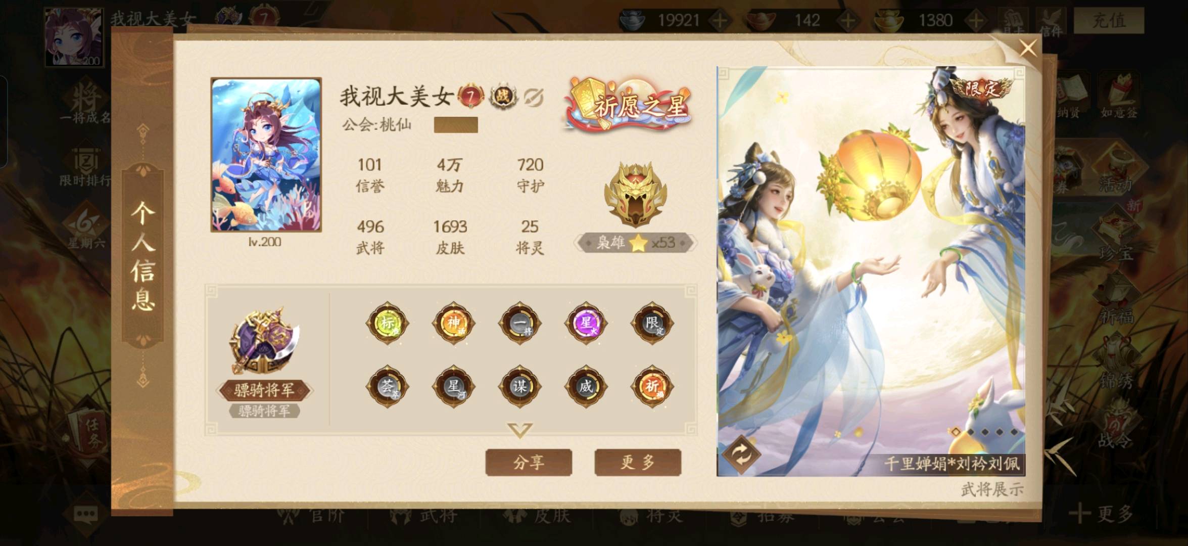 【全平台】 【多赠租送】496将骠骑新氪【谋骆统 孙翎鸾 谋曹昂】五威八神武二谋八乐许靖滕芳兰1693皮/禁言中