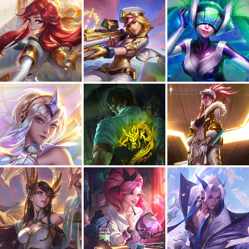 【传说皮肤】金牌主播德莱文 钢铁军团盖伦 血石领主弗拉基米尔 墨之影武者易 蔷薇绅士杰斯 星之守护者卡莎 天煞劫 影执事劫 光明哨兵薇恩 星之守护者金克丝 神龙尊者夜月幻龙亚索 西部魔影卢锡安 黎明使者永恩 红色男爵库奇 泳池派对吉格斯 源计划毁灭派克 霸天异形卡兹克 屠龙勇士潘森 偶像歌手阿狸 灵魂莲华阿狸 源计划净化薇恩 神王德莱厄斯 神拳李青 女帝卡特琳娜 炼狱魔犬内瑟斯 冰霜之刃艾瑞莉娅 星之守护者洛 太空律动猫猫布里和里茨 灵能特工娑娜 黑夜使者索拉卡 日蚀骑士蕾欧娜 星之守护者霞 暗星锤石 西部天使赛娜 真实伤害艾克 暗星尊烬 奥德赛凯隐 灌篮高手德莱厄斯 黑夜使者亚索 女校长菲奥娜 冰霜亚龙希瓦娜 焰尾妖狐阿狸 耀星女神拉克丝 苍穹之光韦鲁斯 宇航员诺提勒斯 符文战熊沃利贝尔 黯黑魔龙希瓦娜 暗星女王拉克丝 枯萎之壤泽拉斯 黎明使者锐雯 月蚀骑士蕾欧娜 死亡骑士盖伦 第三类接触黑默丁格 腥红之月鬼武姬阿卡丽 源计划超体莫德凯撒 战斗学院伊泽瑞尔 神龙尊者圣龙李青 银河魔装机神兰博 丧尸布兰德 冰川巨兽墨菲特 女警狙击凯特琳 源计划泯灭雷克顿 上古战魂魔腾 女主播迦娜 陆地王者4WD布里茨 苹果机器人布里茨 电玩女神娑娜 未来战士凯特琳 最终BOSS维迦 黯晶凤凰艾尼维亚 双重冰晶艾尼维亚 战地巨兽科加斯 律政大亨蒙多 恶魔之刃泰达米尔 女皇艾希 源计划联合艾希 绅士科加斯 驯龙炮手崔丝塔娜 约德尔国队长提莫 提莫约德尔人的一大步 至尊魔女莫甘娜 欧米伽小队幽灵特工 黎明使者索拉卡 恶魔男爵瑞兹 霸天零式赛恩 合金巨兽努努和威朗普 大天使长米迦勒凯尔 烈焰雄心崔丝塔娜 邪鸦魅影乐芙兰 战地机甲厄加特 战场女武神凯尔 源计划林易 魔幻卡牌崔斯特 地狱之门卫士加里奥 铁哥们儿奥拉夫 西部天使艾希