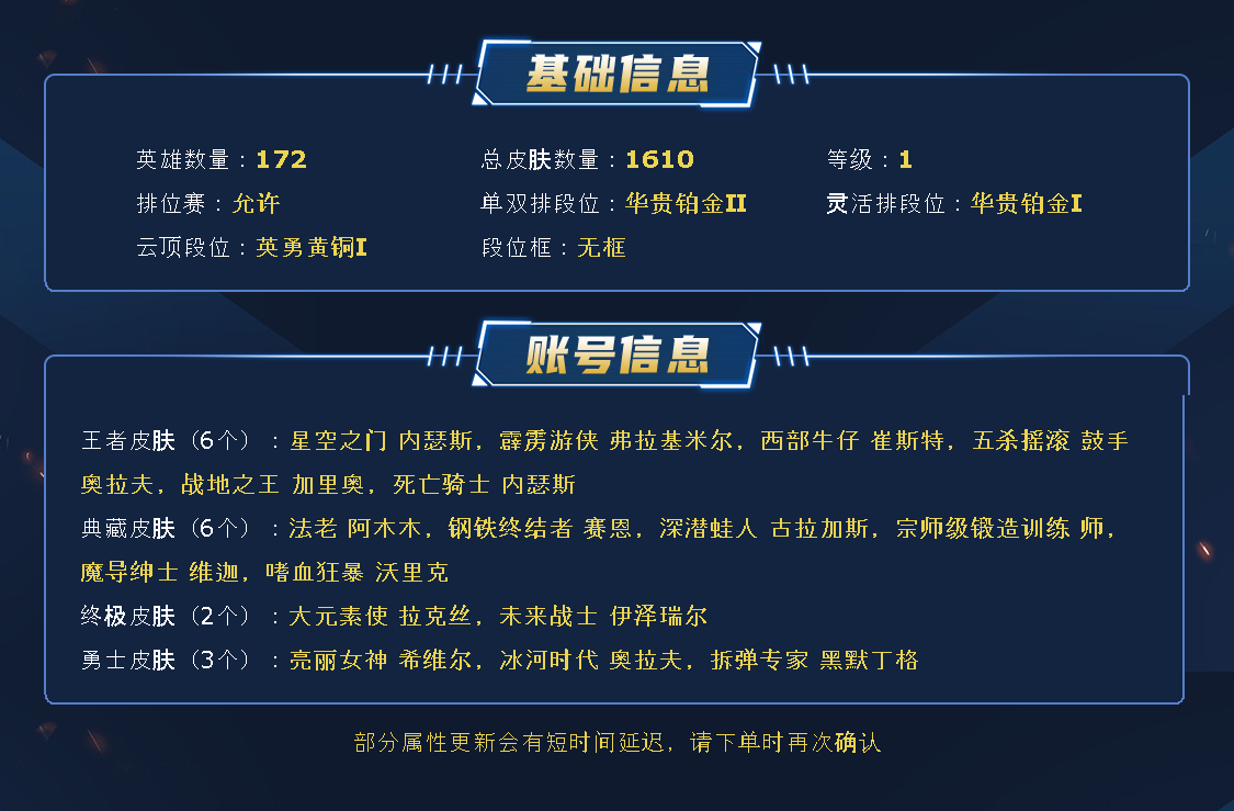 ~~喜欢记得收藏~~可排位~~1582皮全英雄~~租之前尽量查一下游戏ID,确保段位是您需要的,避免浪费您的时间~~请勿挂机逃跑故意送人头,谢谢合作,谢谢~~