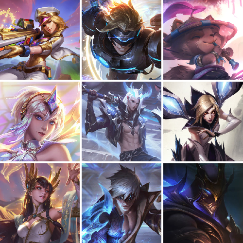 【重要皮肤】剪纸仙灵希维尔至臻 幻灵战斗猫金克丝至臻 魔女婕拉至臻 魔女乐芙兰至臻 未来战士卢锡安至臻 真实伤害亚索至臻 真实伤害赛娜至臻 灵能特工伊泽瑞尔至臻 福牛守护者菲奥娜至臻 源计划逆流塞拉斯至臻 神龙尊者炎龙瑟提至臻 黑夜使者凯隐至臻 神龙尊者均衡之龙沃利贝尔至臻 征服者贾克斯至臻 KDA二代卡莎至臻 KDA一代卡莎至臻 KDA伊芙琳至臻 KDA伊芙琳2022至臻 烈焰美人薇恩至臻 烈焰美人薇恩2022至臻 电玩女神凯特琳至臻 电玩女神凯特琳2022至臻 源计划正义艾瑞莉娅至臻 源计划正义艾瑞莉娅2022至臻 绒毛菲兹至臻 玉剑传说武剑仙至臻 玉剑传说武剑仙2022至臻 腥红之月亚托克斯至臻 腥红之月亚托克斯2022至臻 未来战士锤石至臻 未来战士锤石2022至臻 黑夜使者李青至臻 黑夜使者李青2022至臻 灰烬骑士莫德凯撒 灰烬杀手塞拉斯 海克斯科技瑟庄妮 海克斯科技雷克顿 海克斯科技克格莫 海克斯科技斯维因 海克斯科技吉格斯 海克斯科技魔腾 新卧虎藏龙贾克斯 永恒之森奥恩 暗星科加斯 光明哨兵奥拉夫 黎明使者卡尔玛 恐惧新星德莱厄斯 零之枪骑赫卡里姆 摄魂使者薇恩 胜利剑圣易 胜利之王泰达米尔 创星之灵璐璐 奥斯曼大帝普朗克 生化领主泰达米尔 荣誉使者玛尔扎哈 养蜂人辛吉德 电玩女神厄运小姐 电玩勇者锐雯 电玩女神阿狸 星之守护者伊泽瑞尔 玉剑传说舞剑仙 海珀利安小队Y03权天使卡蜜尔 玉剑传说舞龙卫 星之守护者佐伊 灵能特工易 黎明使者薇恩 点心宝贝阿木木 银龙裁决泰隆 天龙之子斯莫德 替父从军花木兰 神龙烈焰金克丝 碧玉之牙卡西奥佩娅 你看见过我的熊猫吗安妮 南天之怒沃里克 玉净夜叉凯特琳 紫金罗刹莫甘娜 张辽文远 司马懿仲达 金猪烈焰瑟庄妮 烈焰美人薇恩 神龙之翼库奇 王国机神青龙德莱文 王国机神苍狼瑟提 福牛守护者嘉文四世 胜利女神瑟庄妮 胜利之树茂凯 胜利机器人布里茨 胜利女神奥莉安娜 胜利枪神格雷福斯 胜利枪神卢锡安 胜利之剑亚托克斯 觅心游侠卢锡安 觅心之翼奎因 觅心萝莉金克丝 觅心猎手薇恩 双城之战2微光实验室辛吉德 寒冬精灵璐璐 冬季仙境奥莉安娜 圣诞捣蛋鬼金克丝 圣诞老人德莱文 冬季仙境卡尔玛 狂心冰王图奇 冰雪女神辛德拉 魄罗骑士瑟庄妮 夺命美人卡特琳娜 平安夜女神娑娜 圣诞糖果棒厄运小姐 魅惑女巫崔丝塔娜 魅惑女巫奈德丽 魅惑女巫伊莉丝 大魔法锅布里茨 大魔王提莫 死亡誓约卡特琳娜 小恶魔菲兹 海之歌萨勒芬妮 泳池派对凯特琳 泳池派对辛德拉 泳池派对奥莉安娜 泳池派对塔莉垭 泳池派对菲奥娜 泳池派对格雷福斯 泳池派对李青 泳池派对蕾欧娜 泳池派对雷克顿 泳池派对布隆 电玩战魂赫卡里姆 御星魔矢艾希 制胜金靴李青 EDG厄斐琉斯 EDG佛耶戈 EDG格雷福斯 EDG悠米 EDG佐伊 DWG烬 FPX锤石 FPX薇恩 FPX李青 FPX普朗克 FPX墨菲特 iG卡蜜尔 iG洛 iG卡莎 iG艾瑞莉娅 iG乐芙兰 iG菲奥娜 SSG嘉文四世 SKTT1扎克 SKTT1辛德拉 SKTT1娜美 SKTT1阿利斯塔 SKTT1卡莉丝塔 SKTT1瑞兹 SKTT1雷克顿 SSW锤石 SSW雷恩加尔 SSW泰隆 SSW图奇 SSW辛吉德 SKTT1贾克斯 SKTT1李青 SKTT1薇恩 暗杀星奥莉安娜 暗杀星蒙多 暗杀星努努和威朗普 暗杀星伊泽瑞尔 暗杀星慎 Fnatic迦娜 Fnatic库奇 Fnatic古拉加斯 Fnatic嘉文四世 冰雪节玛尔扎哈 冰雪节辛吉德 冰雪兽纳尔 防暴士兵格雷福斯 防暴天使凯尔 钢铁之翼艾尼维亚 冠军典狱长锤石 冠军掠夺者卡兹克 冠军蔷薇乐芙兰 冠军之矛卡莉丝塔 冠军之刃锐雯2016 冠军之血希瓦娜 冠军之志瑞兹 春晖海神卡兹克 鬼影森森茂凯 鬼影重重魔腾 海贼瑞兹 胡桃夹子萨科 惊悚派对阿木木 警用试作体K9内瑟斯 蓝色忧郁崔斯特 密林猎手提莫 南瓜头费德提克 女猎手希维尔 破空枪骑孙悟空 圣诞精灵崔丝塔娜 圣诞开心鬼提莫 圣诞狂欢基兰 圣诞狂欢努努和威朗普 圣诞老人古拉加斯 圣诞玩偶波比 圣诞驯鹿克格莫 糖果使徒费德提克 外星装甲库奇 卧虎藏龙贾克斯 无头骑士赫卡里姆 喜庆之树茂凯 邪恶圣诞老人维迦 幸福女神乐芙兰 雪默丁格 野兽猎人德莱文 野兽猎人瑟庄妮 野兽猎人泰达米尔 英勇玩具兵普朗克 勇者阿狸 暗影沃里克 冠军之箭艾希 诺斯费拉图弗拉基米尔 阿木木主人不要我了 2021全球总决赛嘉文四世 波比的巧克力工坊 都铎王朝图奇 十五周年纪念希维尔 十周年纪念安妮 源代码乐芙兰 神凰行者瑞羽圣凰艾尼维亚 胜利凤凰艾尼维亚 大元素使拉克丝 未来战士伊泽瑞尔 绝息圣堂洛