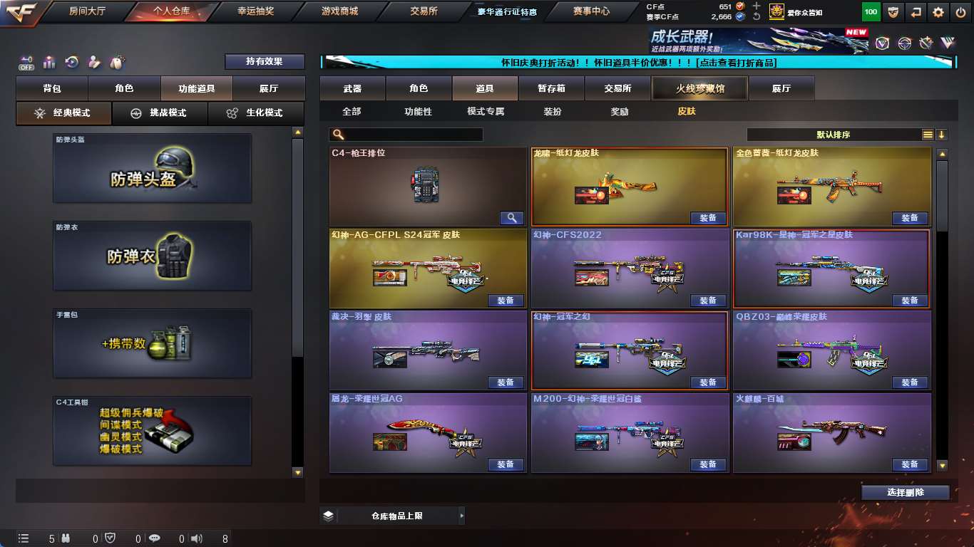 【亮点解析 幻神三级套5皮】 【m200-幻神+音效卡+幻神-冠军之幻+cfs2022+ag24冠军+荣耀世冠白鲨+幻神-黄忠】 【98k星神+冠军之心】 【王者风神】 【scar白虎】 【qbz金色蔷薇】 【裁决】 【毁灭+音效卡+毁灭-冠军之怒】 【极光】 【火麒麟】 【黑龙】 【雷神+雷神-宠儿+雷神-荣耀之魄】 【黑骑士】 【6手呛 修罗 cop云龙 柯尔特荣耀世冠白鲨2023 冠军之特】 【5近战 屠龙*2 龙啸 冠军之刃*2】 【手雷 幻灵雷 雷霆王者】 【四防 隼 女主播】