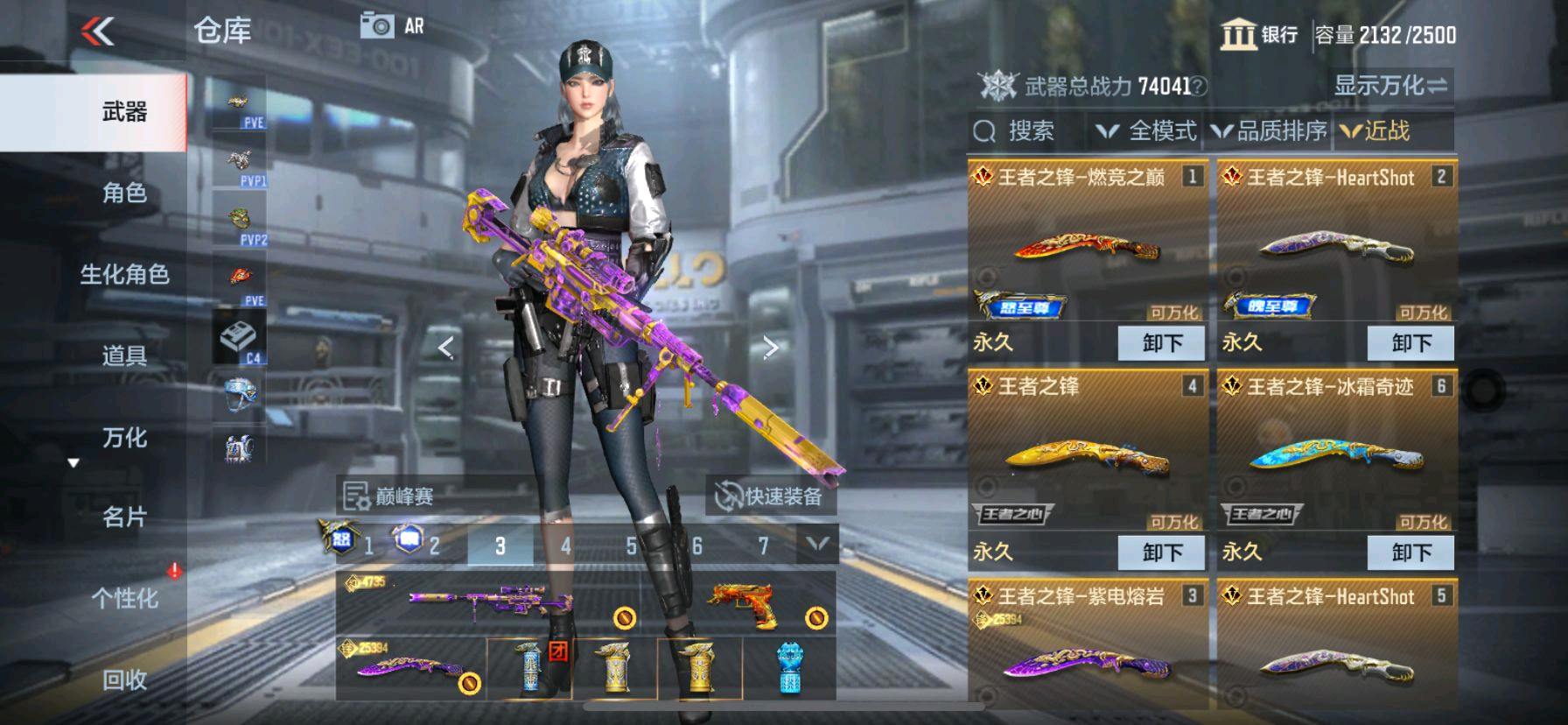 【皮肤】 王者之翎冠军EP, 王者之腾冠军EP, 王者幻神冠军EP, 王者之魂白金血钻, 王者之锋白金血钻, 王者幻神紫电熔岩, 王者之锋紫电熔岩, 王者之力紫电熔岩, 王者之迹燃竞之巅*2, 王者之痕燃竞之巅, 王者之锋燃竞之巅, 王者之心手雷燃竞之巅, 王者之轮HeartShot, 王者之电HeartShot, 王者之心烟雾弹HeartShot*4, 王者之心闪光弹HeartShot, 王者之心手雷HeartShot*2, 王者之影闪光弹HeartShot, 王者之影烟雾弹HeartShot, 王者之影手雷HeartShot, 王者之翼手雷HeartShot, 王者之力HeartShot, 王者之心HeartShot, 王者之锋HeartShot*2, 王者之怒HeartShot, 王者之技冰霜奇迹, 王者之狱冰霜奇迹, 烟雾弹雷霆王者冰霜奇迹, 闪光弹雷霆王者冰霜奇迹, 高爆手雷雷霆王者冰霜奇迹, 王者之圣烟雾弹冰霜奇迹, 王者之圣闪光弹冰霜奇迹, 王者之兽闪光弹冰霜奇迹, 王者之兽手雷冰霜奇迹, 王者之锋冰霜奇迹, 王者幻神冰霜奇, MK5机械纪元蚀刻战甲, 81式光明之神三足金乌, 死神烟雾弹暗月*2, 黑骑士烟雾弹能量核心, 黑武士烟雾弹能量核心*2, 火麒麟烟雾弹能量核心*2, 火麒麟烟雾弹寒霜*3, 烟雾弹游骑兵寒霜, 死神烟雾弹秘银, 火麒麟烟雾弹钰*4, 黑武士闪光弹能量核心, 火麒麟闪光弹能量核心*2, 火麒麟闪光弹寒霜*3, 死神闪光弹秘银, 火麒麟闪光弹钰*2, 死神手雷暗月, 黑武士手雷能量核心, 火麒麟手雷能量核心*2, 火麒麟手雷寒霜*3, 死神手雷秘银, 火麒麟手雷钰*4, 丛林匕首死神马赛克, 丛林匕首死神能量核心, 擎天觉醒现代金属*2, 擎天觉醒暗月, 屠龙星空, 尼泊尔火麒麟钰, 龙啸英雄战甲, 蝴蝶刀极光清凉夏日, 蝴蝶刀极光淬意蝶舞, 双持柯尔特极光清凉夏日, 改装GLOCK黑龙暗月, 左轮竞界荣光蜂鸟, 沙鹰飞电星空, 沙鹰无影暗月, 沙鹰火麒麟不屈老兵, 沙鹰无影不屈老兵, 沙鹰游骑兵寒霜, 沙鹰火麒麟暗月, 沙鹰火麒麟钰, QBB95极光果冻超甜, 98K黑骑士星空, 巴雷特极光不屈老兵, 巴雷特毁灭不屈老兵, 巴雷特极光能量核心, AWM天龙秘银, AWM天龙果冻超甜, AWM天龙英雄战甲, 81式光明之神千变*3, M4A1黑龙墨子, M4A1黑骑士不屈老兵, M4A1黑骑士白马银枪*2, M4A1雷神RGB骇客, M4A1千变随变*2, M4A1黑骑士现代金属, M4A1沙漠领主漫画, M4A1雷神千变*2, M4A1黑龙苏城钰, M4A1雷神暗月, AK47无影RGB骇客, AK47无影暗月, AK47火麒麟不屈老兵, AK47雷麒麟火锅, AK47竞界荣光蜂鸟, AK47星速纸片, AK47火麒麟白虎, AK47火麒麟雷神
