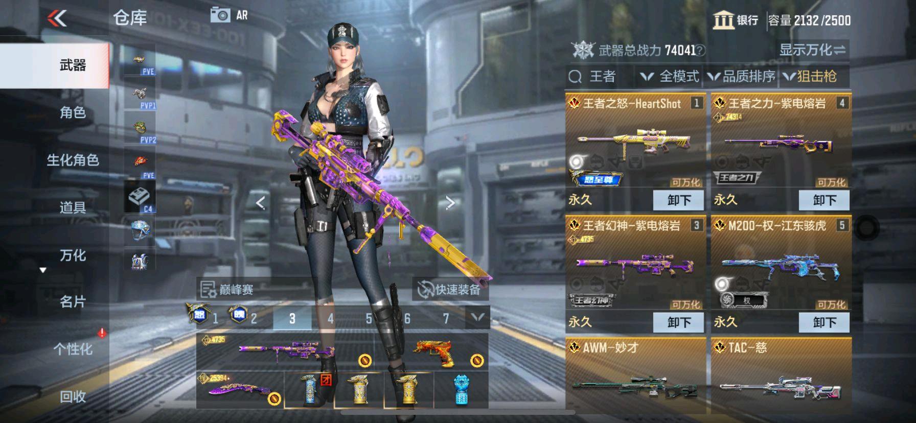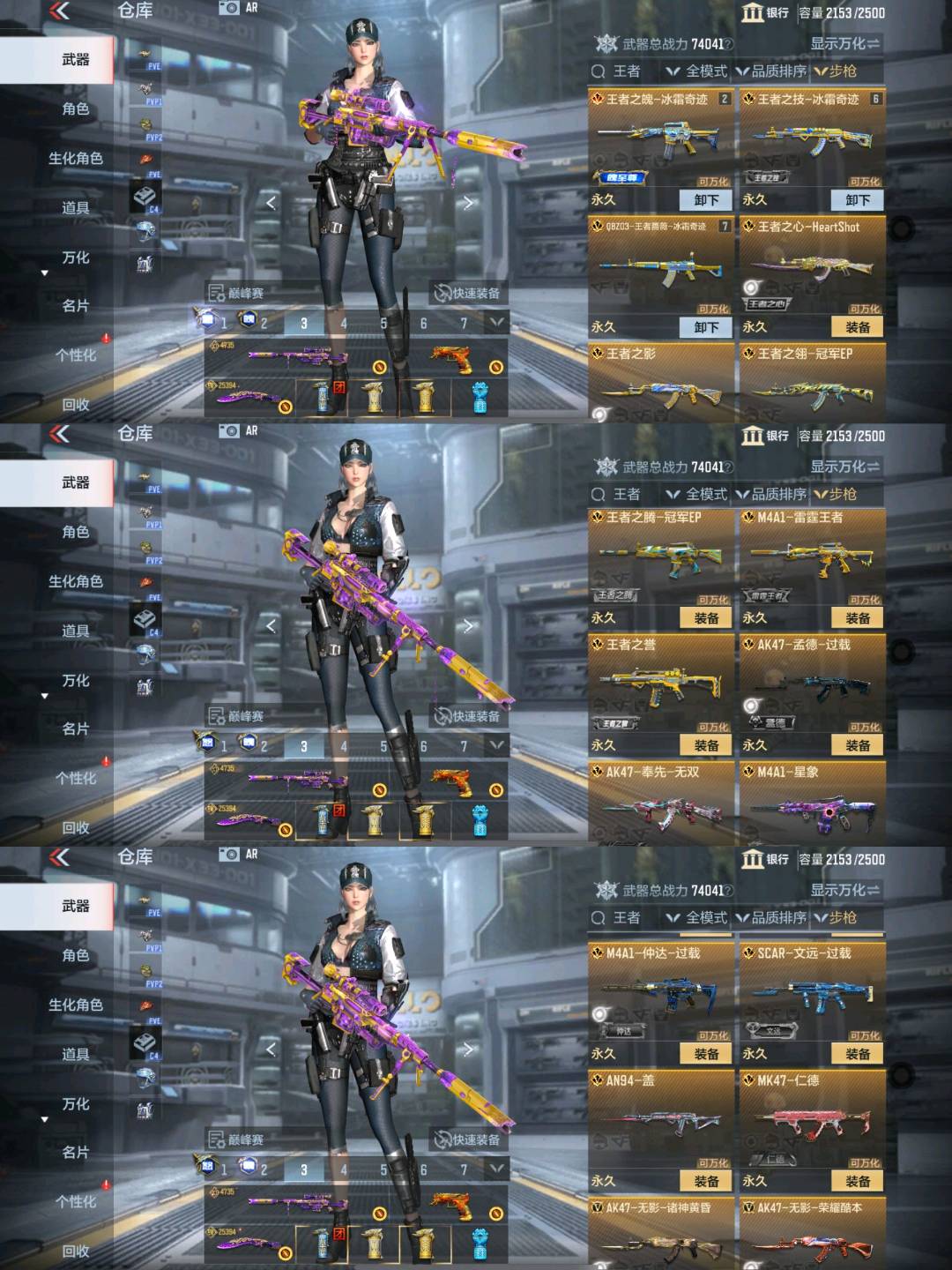 【武器】 王者之誉, 王者之技, QBZ03王者蔷薇, 王者之蝶, 王者之霆, M12S雷霆王者, M4A1雷霆王者, 王者之翎, 王者之魄, 王者之心, 王者之腾, 王者之力, 王者之怒, 王者幻神, 王者之狱, 王者之业, 王者之轮, 王者之迹, 王者之电*2, 王者之魂*2, 王者之锋*6, AN94盖, CZS2仲康, M200权, KSG孟获, SKS曳鼎, AK47奉先, AK47孟德, M4A1仲达, M4A1星象, M4A1游骑兵*2, MK47仁德, AWM妙才, M200幻神, TAC慈, 巴雷特雷神, SCAR文远, M12S天公, 81式光明之神, 81式机械纪元, MK47云舞, COP357安琪拉*4, COP357堕天神, COP357雷霆, COP357雷霆王者, 柯尔特仲达, MK23双脊龙, MK23幻神, MK23机械纪元, 双管猎枪黑骑士, 炽芒蝶刃*2, 09式狙魔音长歌觉醒, 98K星神, 98K血月, 98K黑骑士*2, 9A91天神, 9A91魔蜥觉醒, AK12天启*2, AK47冰魂, AK47变色龙, AK47天使, AK47无影*2, AK47春雅觉醒, AK47沙漠郡主二觉, AK47沙漠领主, AK47游骑兵, AK47火麒麟*4, AK47燎天净火, AK47猩红传说, AK47竞技战魂, AK47谜城烟火, AK47轮回, AK47黑武士觉醒, AK47黑鲨, AN94四凶觉醒,【投掷】 投掷王者之竞手雷, 投掷王者之竞闪光弹*2, 投掷王者之竞烟雾弹*2, 投掷烟雾弹雷霆王者, 投掷闪光弹雷霆王者, 投掷高爆手雷雷霆王者, 投掷王者之兽烟雾弹, 投掷王者之兽闪光弹, 投掷王者之兽手雷, 投掷王者之势烟雾弹*2, 投掷王者之势闪光弹*2, 投掷王者之势手雷*2, 投掷王者之心烟雾弹*2, 投掷王者之心闪光弹, 投掷王者之心手雷*2, 投掷王者之影闪光弹*5, 投掷王者之影烟雾弹*5, 投掷王者之翼烟雾弹*3, 投掷王者之翼闪光弹*3, 投掷手雷云海游龙*8, 投掷烟雾弹游骑兵, 投掷闪光弹游骑兵, 投掷燃烧弹游骑兵*7, 投掷黑武士烟雾弹*3, 投掷黑武士闪光弹*3, 投掷黑武士手雷*3, 投掷火麒麟闪光弹*2, 投掷火麒麟烟雾弹*2, 投掷火麒麟手雷*2, 投掷死神烟雾弹, 投掷死神闪光弹, 投掷死神手雷, 投掷烟雾弹星际宇航, 投掷手雷游骑兵, 投掷手雷星象, 投掷粘性手雷附骨之虫觉醒, 投掷闪光弹星象, 投掷高爆手雷幻灵