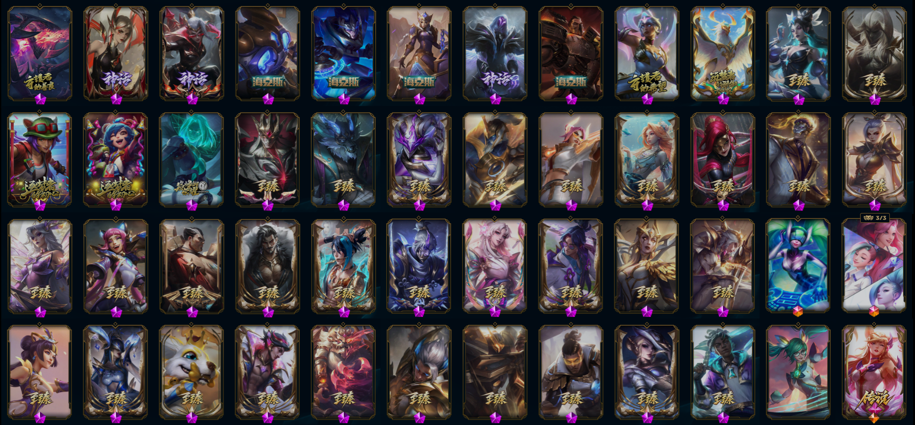 【重要皮肤】T1塞拉斯至臻 暗裔英雄嘉文四世至臻 莲华温泉厄斐琉斯至臻 灵魂莲华劫至臻 灵魂莲华拉克丝至臻 战斗学院奇亚娜至臻 凯旋将军德莱厄斯至臻 黑色玫瑰假面舞会卡特琳娜至臻 狼神英灵斯维因至臻 至高天凯尔至臻 西部魔影伊芙琳至臻 神龙尊者比翼之龙洛至臻 斗魂觉醒萨科至臻 花仙使者卡特琳娜至臻 青花瓷丽桑卓至臻 北极星使者沃里克至臻 灵魂莲华易至臻 星之守护者辛德拉至臻 星之守护者艾克至臻 海之歌萨勒芬妮至臻 幻灵战斗猫金克丝至臻 青花瓷拉克丝至臻 女帝黛安娜至臻 魔女乐芙兰至臻 未来战士卢锡安至臻 福牛守护者菲奥娜至臻 源计划阴劫至臻 王国机神玄武盖伦至臻 神龙尊者炎龙瑟提至臻 神龙尊者均衡之龙沃利贝尔至臻 飞升战神潘森至臻 焰执事布兰德至臻 KDA二代卡莎至臻 绒毛菲兹至臻 玉剑传说武剑仙至臻 腥红之月亚托克斯至臻 腥红之月亚托克斯2022至臻 殿堂传奇薇恩 殿堂传奇乐芙兰 灰烬骑士派克 海克斯科技瑟庄妮 海克斯科技嘉文四世 海克斯科技阿木木 暗星科加斯 黎明使者卡尔玛 恐惧新星德莱厄斯 胜利女神娑娜 胜利之王泰达米尔 胜利巨口克格莫 创星之灵璐璐 荣誉使者玛尔扎哈 勇敢的心德莱厄斯 电玩女神厄运小姐 电玩女神阿狸 玉剑传说无影 玉剑传说舞剑仙 玉剑传说神机花火 玉剑传说无劫 点心宝贝阿木木 天龙之子斯莫德 碧玉之牙卡西奥佩娅 春晖神女拉克丝 金猪烈焰瑟庄妮 烈焰美人薇恩 纳财大帝塔姆 王国机神白虎贾克斯 福牛守护者菲奥娜 胜利女神瑟庄妮 胜利机器人布里茨 胜利枪神卢锡安 胜利之剑亚托克斯 碎心之拳蔚 甜心宝贝娑娜 觅心魔灵奥莉安娜 觅心萝莉金克丝 觅心猎手薇恩 双城之战2微光实验室辛吉德 圣诞老人德莱文 冰雪风暴希维尔 狂心冰王图奇 魄罗骑士瑟庄妮 夺命美人卡特琳娜 平安夜女神娑娜 大魔法锅布里茨 死亡誓约卡特琳娜 克烈古拉伯爵 南瓜头王子阿木木 泳池派对凯特琳 泳池派对普朗克 泳池派对厄运小姐 泳池派对塔里克 泳池派对蕾欧娜 泳池派对雷克顿 电玩战魂赫卡里姆 送披萨的小姐姐希维尔 克格汪 EDG佐伊 iG卡蜜尔 iG洛 iG乐芙兰 SSG霞 SSG洛 SKTT1辛德拉 SKTT1奥拉夫 SKTT1瑞兹 SKTT1雷克顿 SSW雷恩加尔 SKTT1劫 SKTT1婕拉 暗杀星奥莉安娜 暗杀星蒙多 暗杀星努努和威朗普 暗杀星伊泽瑞尔 暗杀星慎 Fnatic迦娜 Fnatic古拉加斯 Fnatic卡尔萨斯 冰雪节辛吉德 冰雪兽纳尔 防暴士兵辛吉德 防暴天使凯尔 冠军掠夺者卡兹克 冠军之血希瓦娜 冠军之隐劫 春晖山神墨菲特 鬼影森森茂凯 鬼影重重魔腾 惊悚派对阿木木 警用试作体K9内瑟斯 蓝色忧郁崔斯特 魅惑女巫娜美 南瓜头费德提克 圣诞精灵崔丝塔娜 圣诞开心鬼提莫 圣诞狂欢努努和威朗普 圣诞老人古拉加斯 圣诞玩偶波比 圣诞驯鹿克格莫 外星装甲库奇 喜庆之树茂凯 邪恶圣诞老人维迦 幸福女神乐芙兰 野兽猎人瑟庄妮 英勇玩具兵普朗克 暗影沃里克 阿木木主人不要我了 2022全球总决赛阿兹尔 波比的巧克力工坊 都铎王朝图奇 十五周年纪念希维尔 十周年纪念安妮 源代码乐芙兰 神凰行者瑞羽圣凰艾尼维亚 胜利凤凰艾尼维亚 暗裔英雄盖伦 DJ娑娜 未来战士伊泽瑞尔 武装战姬厄运小姐 KDAALLOUT萨勒芬妮独立音乐人 KDAALLOUT萨勒芬妮明日新星 KDAALLOUT萨勒芬妮超级巨星 绝息圣堂洛
