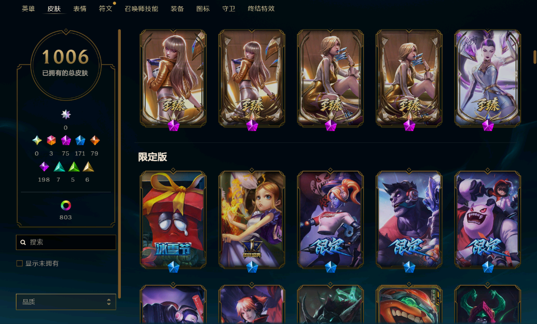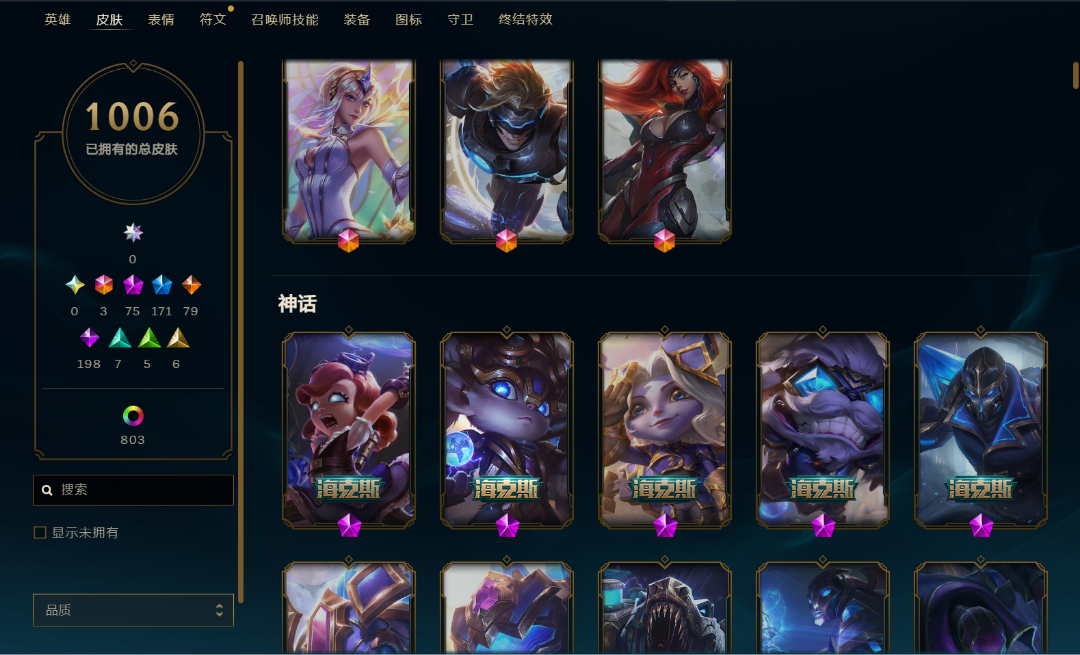 可排✨分不够自己打 ✨原皮1008✨炫彩861✨龙瞎✨24臻彩✨75神话✨171限定✨79传说