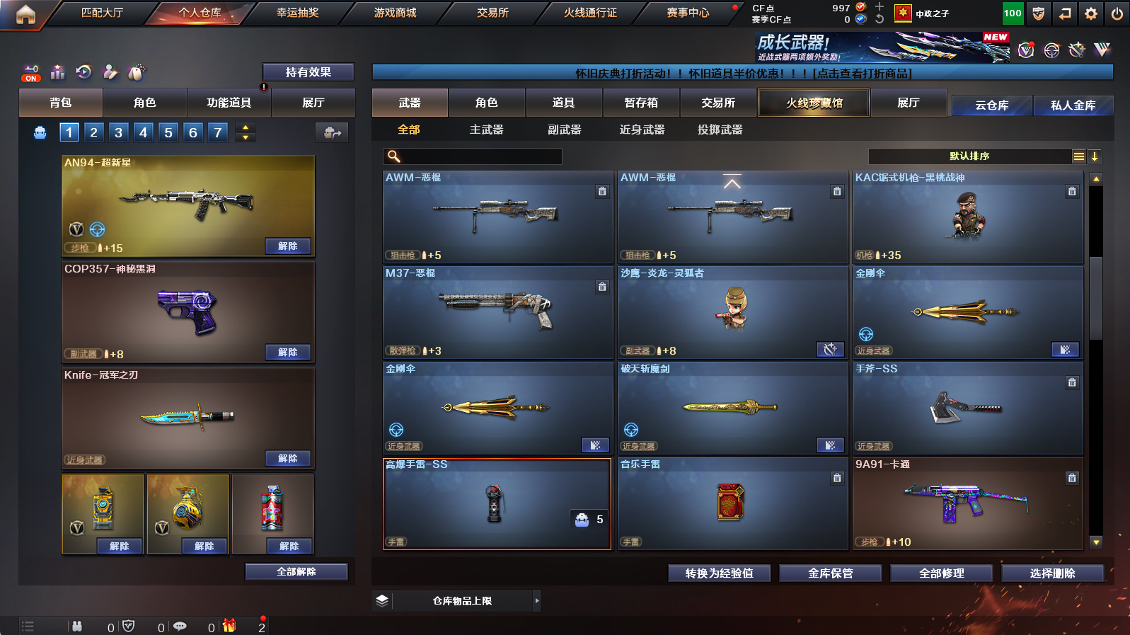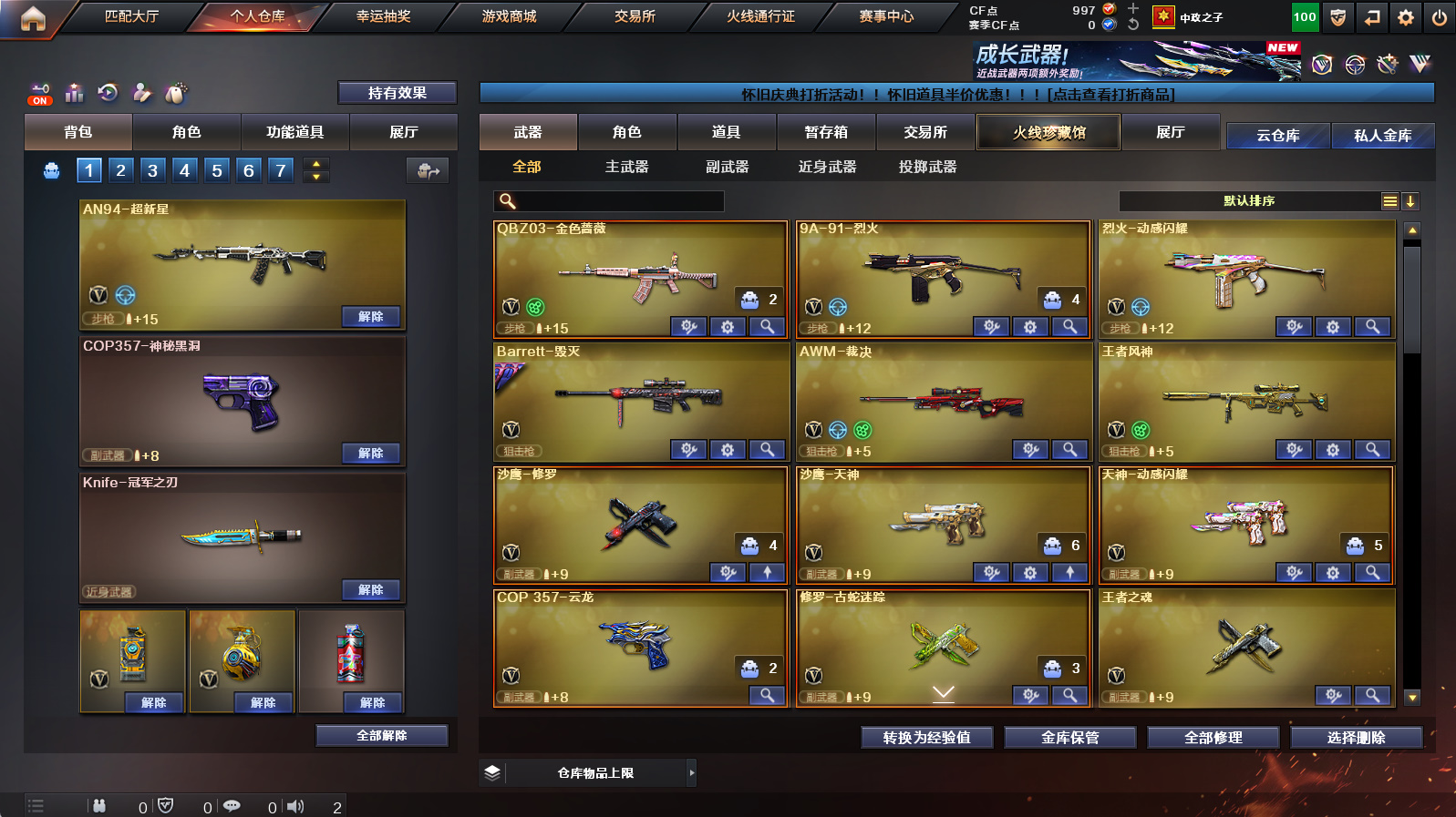 【觉醒王者风神】【cop云龙】【炽芒蝶刃】【裁决+裁决音效卡】【传说幽冥】【青龙之魄】【雷神女团皮+雷神荣耀之魄+毁灭荣耀之怒+毁灭女团皮+毁灭直播专属+火麒麟传奇even+火麒麟冠军之心】【天罚音效卡+雷神音效卡+黑骑士音效卡】【王者炫+满配乔伊教练+奇洋探员+蛇隐宗+女主播】【冠军之刃】【天罚+金色蔷薇】【火麒麟+雷神+黑骑士+毁灭】【朱雀蛇隐宗】【毁灭孙三炮+王者英勇金戈+沙鹰炎龙灵狐者】【擎天柱+试炼破坏者】【金刚伞】【牛牛ak47】【1911大黄蜂】【闪光护目镜+超级背包+炫彩背包】【a背包套装手雷包】【工具钳+手雷包】