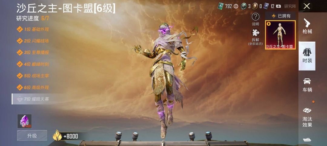 6级木乃伊图卡盟⭐满级至情至圣⭐战神框⭐6级升级手雷⭐独角马觉醒螳螂圣堂之誓第五大道17印记