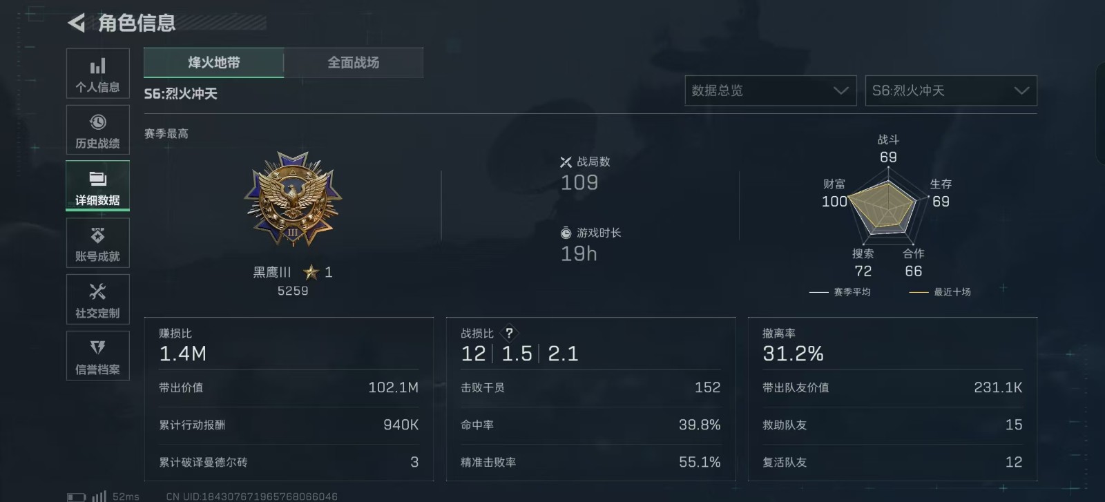 - 烽火地带段位: 黑鹰