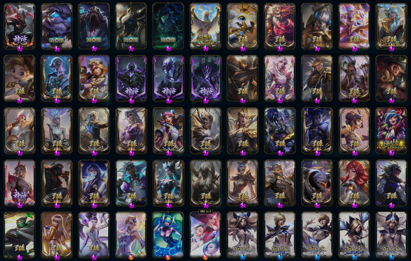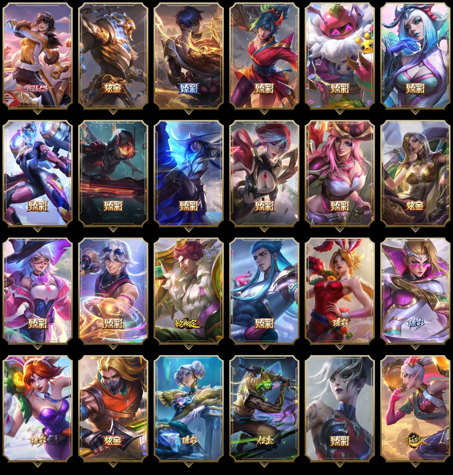 【重要皮肤】机神玄武盖伦至臻 灵魂莲华拉克丝至臻 魔域梦魇泽丽至臻 天龙之子伊泽瑞尔至臻 北极星钢影卡蜜尔至臻 心之钢永恩至臻 墨之影武者亚索至臻 花仙使者卡特琳娜至臻 海珀利安小队X09星环灵风迦娜至臻 星之守护者辛德拉至臻 星之守护者艾克至臻 西部魔影猎天使恶魔泰隆至臻 幻灵战斗猫金克丝至臻 青花瓷拉克丝至臻 魅惑女巫莫甘娜至臻 太空律动璐璐至臻 魔女婕拉至臻 魔女乐芙兰至臻 奥术师佐伊至臻 真实伤害赛娜至臻 灵能特工伊泽瑞尔至臻 福牛守护者菲奥娜至臻 源计划逆流塞拉斯至臻 源计划阴劫至臻 神龙尊者炎龙瑟提至臻 黑夜使者凯隐至臻 神龙尊者均衡之龙沃利贝尔至臻 征服者贾克斯至臻 KDA二代卡莎至臻 KDA一代卡莎至臻 战斗学院拉克丝至臻 电玩女神凯特琳至臻 魅惑女巫厄运小姐至臻 绒毛菲兹至臻 玉剑传说武剑仙至臻 腥红之月亚托克斯至臻 殿堂传奇薇恩 灰烬骑士莫德凯撒 灰烬征服者潘森 灰烬杀手塞拉斯 海克斯科技瑟庄妮 海克斯科技雷克顿 海克斯科技克格莫 海克斯科技吉格斯 海克斯科技波比 水晶圣骑艾希 零之枪骑赫卡里姆 摄魂使者薇恩 胜利女神娑娜 胜利之王泰达米尔 胜利巨口克格莫 战熊骑士瑟庄妮 创星之灵璐璐 荣誉使者玛尔扎哈 养蜂人辛吉德 勇敢的心德莱厄斯 电玩女神厄运小姐 玉剑传说无影 玉剑传说舞剑仙 玉剑传说舞龙卫 玉剑传说翼剑仙 星之守护者佐伊 剪纸仙灵艾瑞莉娅 剪纸仙灵婕拉 龙腾虎跃瑟提 猛虎下山赵信 替父从军花木兰 古琴余韵娑娜 春晖神女拉克丝 你看见过我的熊猫吗安妮 北辰之威内瑟斯 玉净夜叉凯特琳 紫金罗刹莫甘娜 广寒仙子嫦娥 烈焰美人薇恩 征服者贾克斯 福牛守护者安妮 福牛守护者厄斐琉斯 福牛守护者德莱厄斯 福牛守护者嘉文四世 福牛守护者菲奥娜 胜利女神瑟庄妮 胜利机器人布里茨 胜利枪神卢锡安 胜利之剑亚托克斯 水晶玫瑰迦娜 甜心宝贝娑娜 穿心之剑菲奥娜 觅心魔灵奥莉安娜 觅心女王艾希 觅心猫猫悠米 幽梦玫瑰泰隆 北极星使者彗 北极星神黛安娜 北极星圣贤基兰 北极星猎人斯维因 冬境仙灵索拉卡 冬季仙境奥莉安娜 圣诞捣蛋鬼金克丝 圣诞老人德莱文 冰雪风暴希维尔 冬季仙境卡尔玛 冰雪女神辛德拉 魄罗骑士瑟庄妮 平安夜女神娑娜 伯爵卡萨丁 大魔王提莫 死亡誓约维克托 泳池派对凯特琳 泳池派对普朗克 泳池派对辛德拉 泳池派对黑默丁格 泳池派对塔莉垭 泳池派对厄运小姐 泳池派对格雷福斯 泳池派对布隆 电玩战魂赫卡里姆 送披萨的小姐姐希维尔 制胜金靴李青 制胜金球拉莫斯 EDG厄斐琉斯 DWG烬 iG卡蜜尔 iG洛 iG卡莎 iG艾瑞莉娅 iG乐芙兰 iG菲奥娜 SSG霞 SKTT1烬 SKTT1辛德拉 SKTT1艾克 SKTT1阿利斯塔 SKTT1瑞兹 SKTT1雷克顿 SSW锤石 SSW雷恩加尔 SSW泰隆 SSW图奇 SKTT1劫 SKTT1婕拉 SKTT1李青 SKTT1薇恩 暗杀星奥莉安娜 暗杀星蒙多 暗杀星努努和威朗普 暗杀星伊泽瑞尔 Fnatic迦娜 Fnatic库奇 Fnatic古拉加斯 Fnatic嘉文四世 Fnatic卡尔萨斯 冰雪节辛吉德 冰雪兽纳尔 防暴机器人布里茨 防暴士兵辛吉德 防暴天使凯尔 冠军典狱长锤石 冠军蔷薇乐芙兰 春晖山神墨菲特 鬼影森森茂凯 鬼影重重魔腾 海贼瑞兹 红桃杰克崔斯特 胡桃夹子萨科 警用试作体K9内瑟斯 蓝色忧郁崔斯特 魅惑女巫悠米 密林猎手提莫 南瓜头费德提克 破空枪骑孙悟空 圣诞精灵崔丝塔娜 圣诞狂欢基兰 圣诞狂欢努努和威朗普 圣诞老人古拉加斯 圣诞玩偶波比 糖果使徒费德提克 外星装甲库奇 无头骑士赫卡里姆 喜庆之树茂凯 邪恶圣诞老人维迦 雪默丁格 雪装奈德丽 野兽猎人德莱文 野兽猎人瑟庄妮 英勇玩具兵普朗克 勇者阿狸 勇者奈德丽 征服者阿利斯塔 征服者卡尔玛 征服者韦鲁斯 暗影沃里克 阿木木主人不要我了 波比的巧克力工坊 都铎王朝图奇 十五周年纪念希维尔 十周年纪念安妮 源代码乐芙兰 神凰行者瑞羽圣凰艾尼维亚 胜利凤凰艾尼维亚 机神苍狼瑟提 机神青龙德莱文 暗裔英雄盖伦 DJ娑娜 大元素使拉克丝 未来战士伊泽瑞尔 KDAALLOUT萨勒芬妮独立音乐人 KDAALLOUT萨勒芬妮明日新星 KDAALLOUT萨勒芬妮超级巨星 绝息圣堂洛