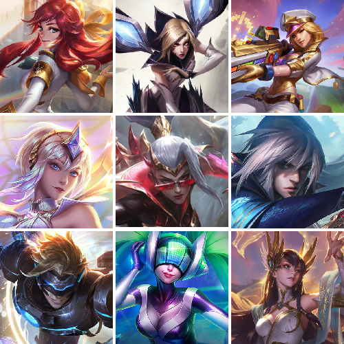 【重要头像】爱意绵绵 萨勒芬妮超级巨星 萨勒芬妮独立音乐人 KDA萨勒芬妮 青花瓷伊泽瑞尔炫彩 沐浴震惊 可爱安妮 福牛守护者厄斐琉斯炫彩 剪纸仙灵艾瑞莉娅炫彩 烈焰美人薇恩 战斗学院伊泽瑞尔神话炫彩 西部天使赛娜神话炫彩 至臻海珀利安小队迦娜 至臻星之守护者辛德拉 至臻幻灵战斗猫金克丝 至臻青花瓷拉克丝 至臻福牛守护者菲奥娜 至臻魔女婕拉 西部魔影卢锡安炫彩头 水晶圣骑艾希炫彩头 水晶圣骑艾希头