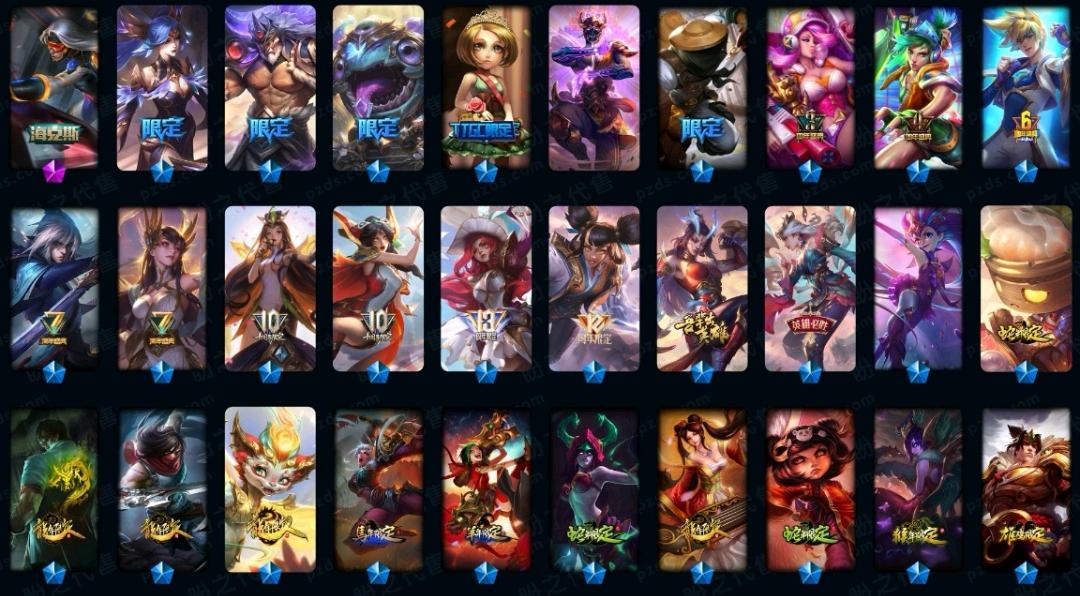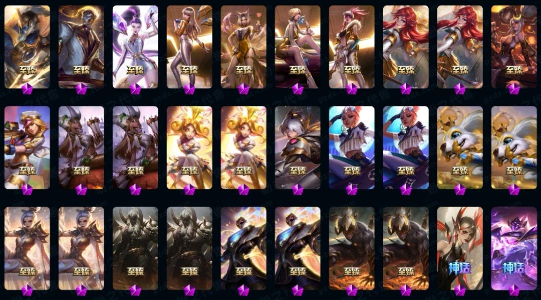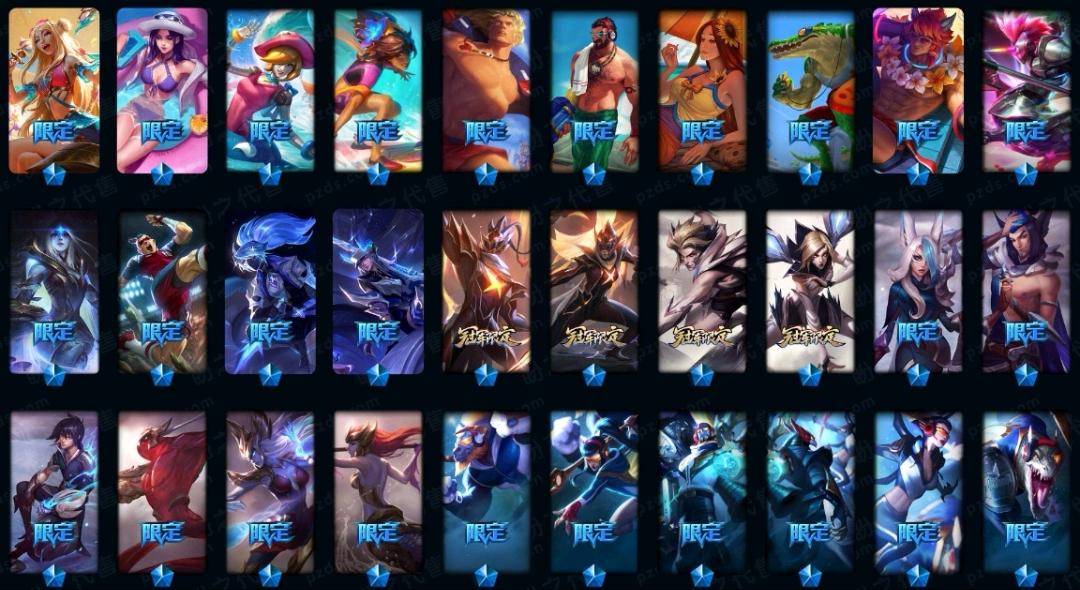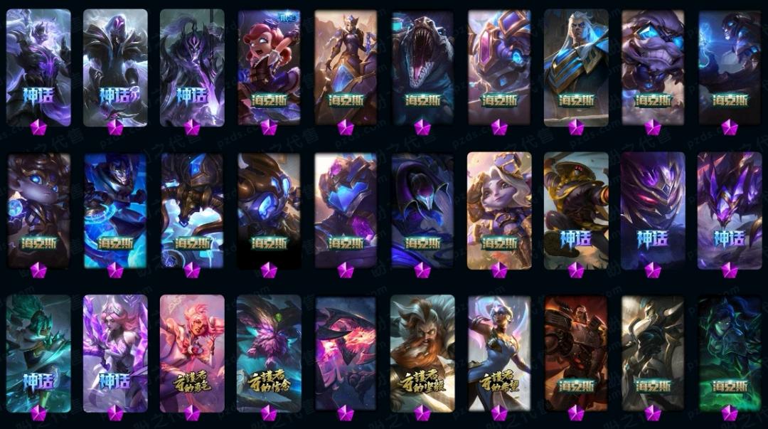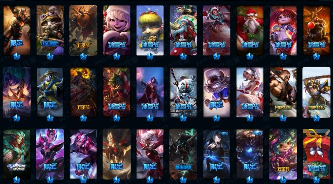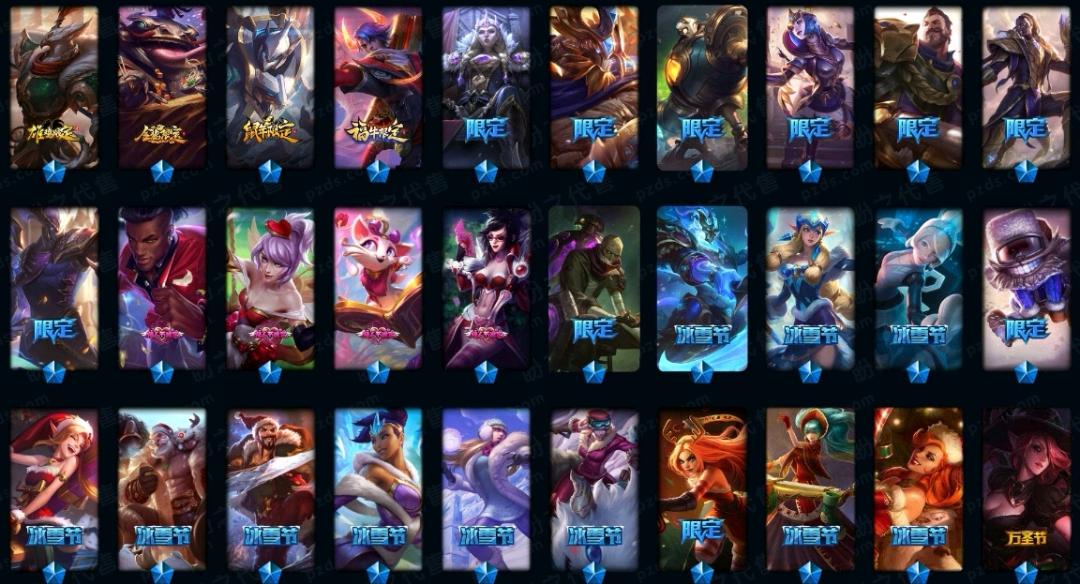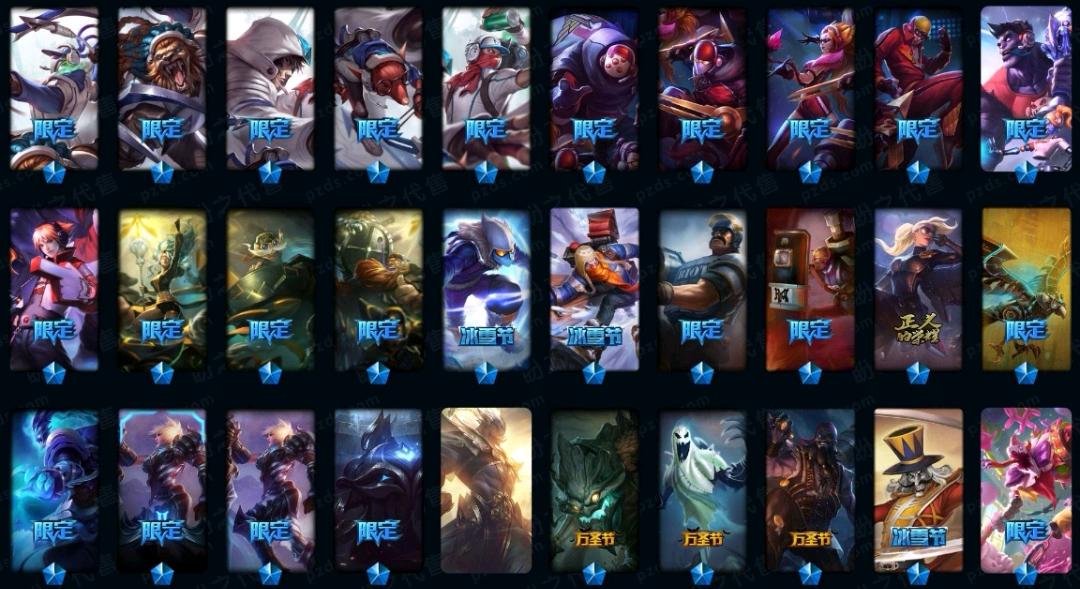 【传说皮肤】黯黑魔龙希瓦娜 黯晶凤凰艾尼维亚 暗星锤石 暗星女王拉克丝 奥德赛凯隐 霸天零式赛恩 霸天异形卡兹克 冰川巨兽墨菲特 冰霜亚龙希瓦娜 冰霜之刃艾瑞莉娅 苍穹之光韦鲁斯 大天使长米迦勒凯尔 电玩女神娑娜 第三类接触黑默丁格 地狱行者孙悟空 地狱之门卫士加里奥 恶魔男爵瑞兹 恶魔之刃泰达米尔 符文战熊沃利贝尔 钢铁军团盖伦 钢铁之翼凯尔 光明哨兵薇恩 灌篮高手德莱厄斯 鬼魂新娘莫甘娜 黑夜使者亚索 合金巨兽努努和威朗普 红色男爵库奇 金牌主播德莱文 枯萎之壤泽拉斯 炼狱魔犬内瑟斯 烈焰雄心崔丝塔娜 黎明使者锐雯 黎明使者索拉卡 灵魂莲华锤石 灵能特工娑娜 陆地王者4WD布里茨 律政大亨蒙多 魔幻卡牌崔斯特 女皇艾希 女警狙击凯特琳 女校长菲奥娜 欧米伽小队幽灵特工 偶像歌手阿狸 苹果机器人布里茨 蔷薇绅士杰斯 丧尸布兰德 上古战魂魔腾 神龙尊者圣龙李青 神龙尊者昼日真龙亚索 神拳李青 绅士科加斯 神王德莱厄斯 神王盖伦 双重冰晶艾尼维亚 死亡骑士盖伦 太空律动猫猫布里和里茨 天煞劫 铁哥们儿奥拉夫 提莫约德尔人的一大步 屠龙勇士潘森 未来战士凯特琳 西部魔影卢锡安 西部天使艾希 邪鸦魅影乐芙兰 腥红之月鬼武姬阿卡丽 星之守护者阿狸 星之守护者金克丝 星之守护者拉克丝 星之守护者洛 血石领主弗拉基米尔 驯龙炮手崔丝塔娜 驯龙学者黑默丁格 焰尾妖狐阿狸 影执事劫 银河魔装机神兰博 泳池派对吉格斯 源计划超体莫德凯撒 源计划毁灭派克 源计划净化薇恩 源计划联合艾希 源计划林易 约德尔国队长提莫 月蚀骑士蕾欧娜 宇航员诺提勒斯 战场女武神凯尔 战地机甲厄加特 战地巨兽科加斯 战斗学院凯特琳 战斗学院伊泽瑞尔 至尊魔女莫甘娜 最终BOSS维迦