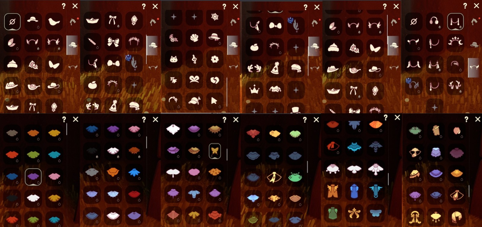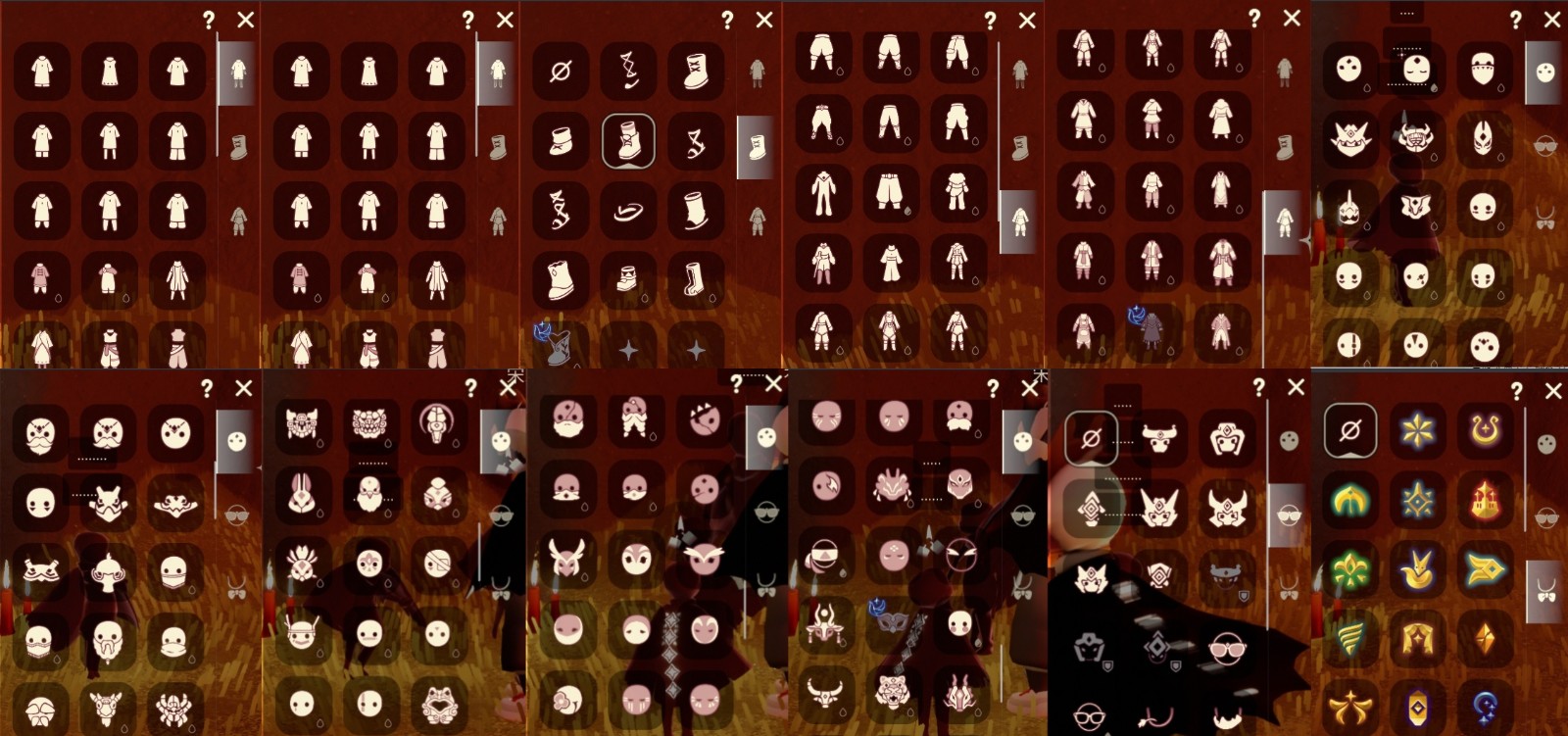 南瓜 巫.师 巫树角 橘子 蝙蝠 蛛网 灯笼 南瓜包 秋千 跷跷板 物品:白棉裤 黑棉裤 搓澡巾棉裤 灯笼裤 高腰棉裤 武士裤 背带裤 新春舞狮一套 回来了 黄鼠狼 花憩节头发 女巫头 斗笠 蝴蝶结 公主头 大辫子 书虫 正太头 红耳机 小红花 彩虹耳坠 绿芽斗篷 海洋斗篷 彩虹斗篷 枫叶斗篷 白绒黑斗篷 白鸟斗篷 白绒斗篷 红绒斗篷 灯泡斗篷 红金斗篷 黑金斗篷 白金斗篷 雨伞 小钟 笛子 排箫 吉他 尤克里里 钢琴 万圣节小椅子如果出现服务器错误 非法请求 请重试的 找到登录记录 删除上一任登录授权就行 禁止未满18周岁租用本账号