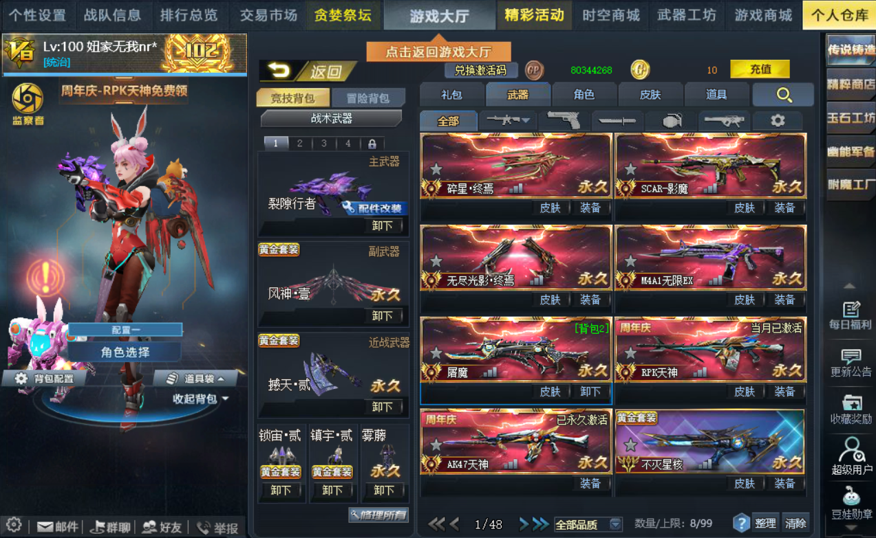 V8七传说✨撼天贰蛇舞贰次元贰✨碎星终焉影魔无限屠魔✨镇宇锁宙贰✨满级丧钟✨满配裂隙核子伏虎幻彩天虹